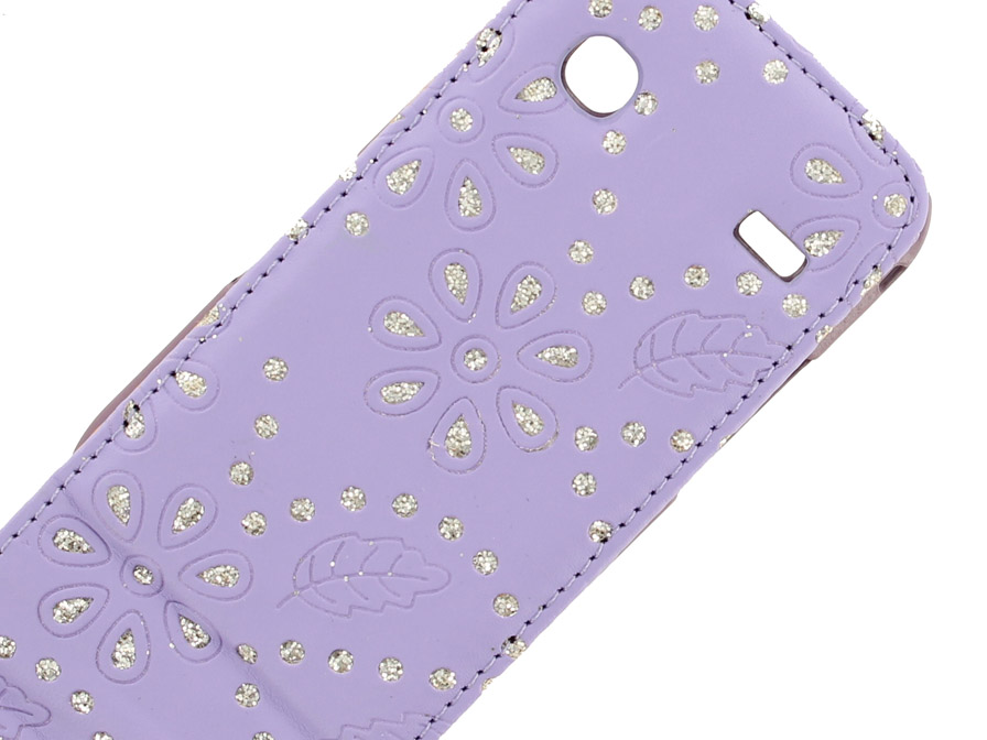 Deze fraaie case is speciaal ontworpen voor Samsung Galaxy Gio (S5660). Het materiaal waar de case van gemaakt is, is geheel gedecoreerd met in het kunstleer verwerkte glinsterende stukjes in een fraai bloempatroon. Dit maakt de case een opvallende verschijning, zeker in deze hippe kleuren!