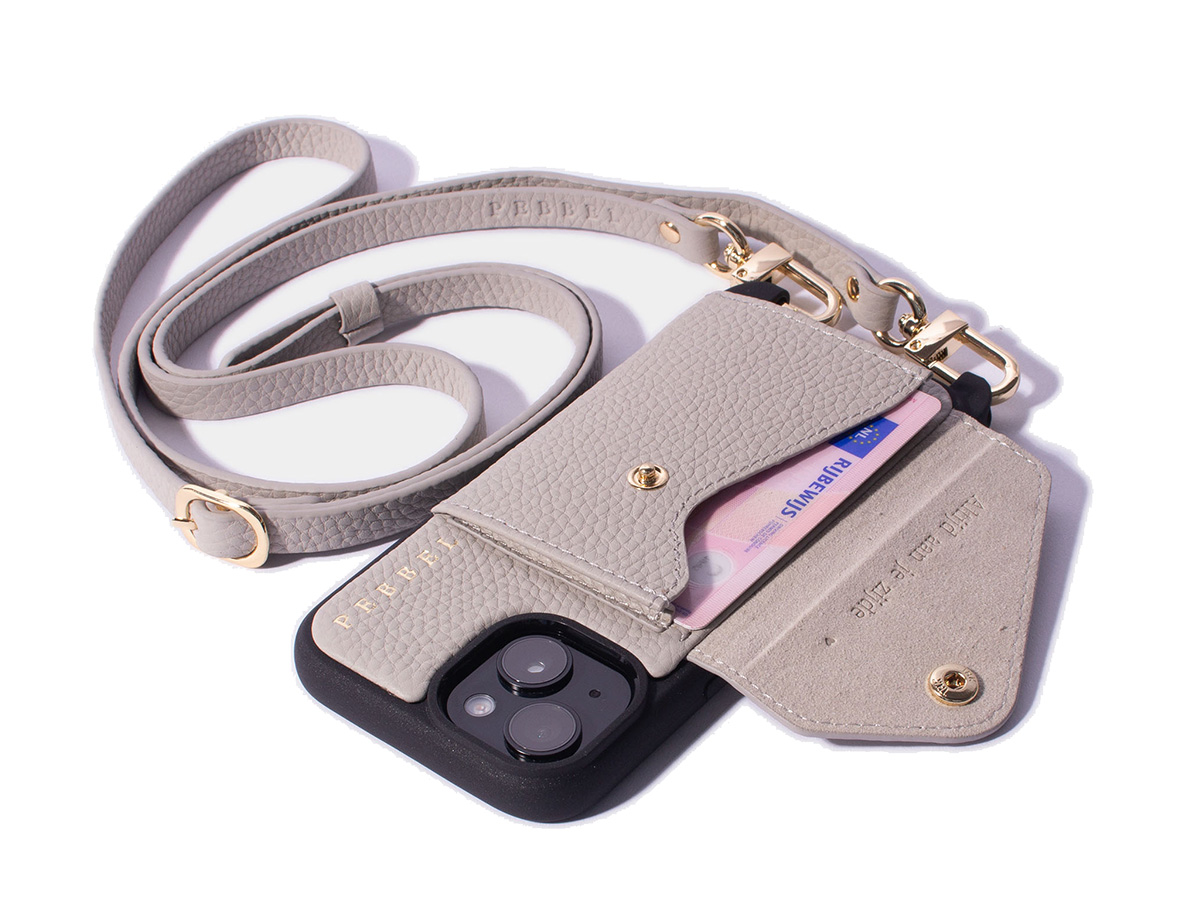 Pebbel Crossbody Case met Leren Koord - iPhone 14 Plus Hoesje Leer Greige