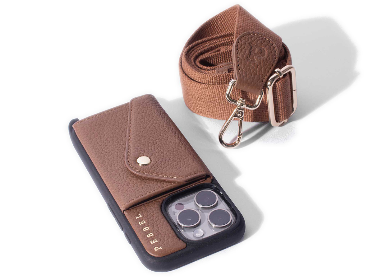 Pebbel Crossbody Case met Hailey Koord - iPhone 15 Pro Max Hoesje Leer Cognac