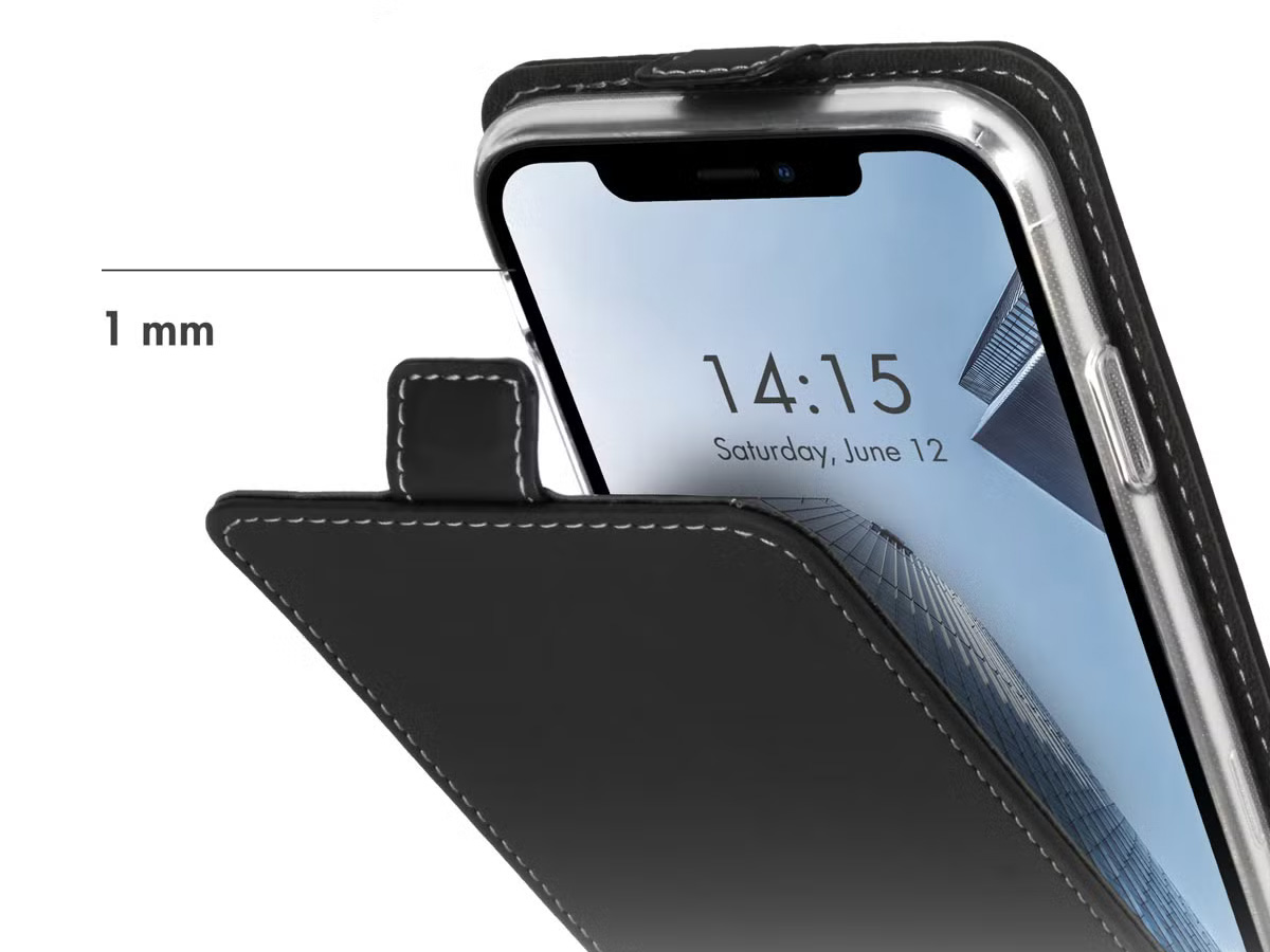 Dankzij het slanke ontwerp voegt deze flipcase nauwelijks extra volume toe aan uw iPhone 13. Hierdoor past uw telefoon nog steeds gemakkelijk in een broekzak of jaszak. Het kunstleren materiaal en de subtiele afwerking geven de hoes een minimalistische en tijdloze uitstraling.