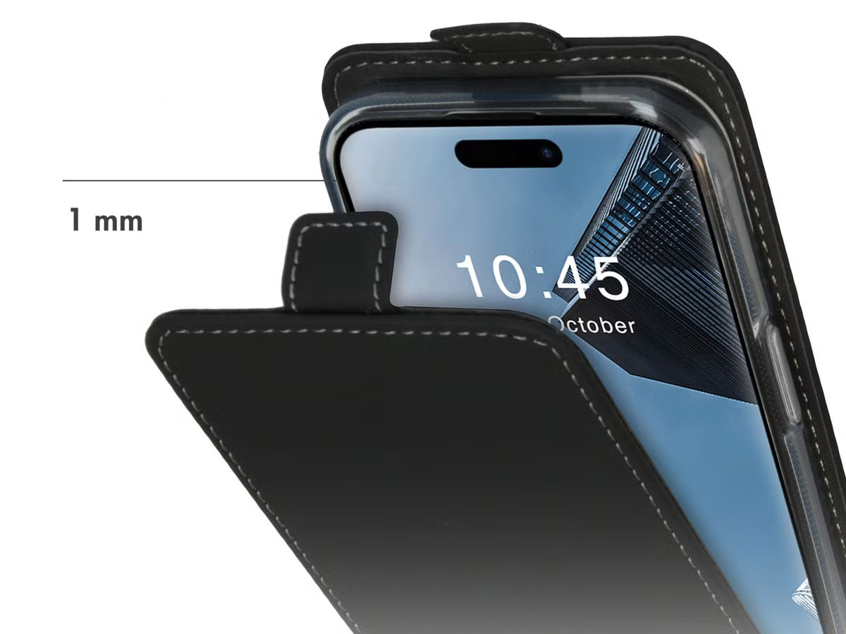 Dankzij het slanke ontwerp voegt deze flipcase nauwelijks extra volume toe aan uw iPhone 15. Hierdoor past uw telefoon nog steeds gemakkelijk in een broekzak of jaszak. Het kunstleren materiaal en de subtiele afwerking geven de hoes een minimalistische en tijdloze uitstraling.
