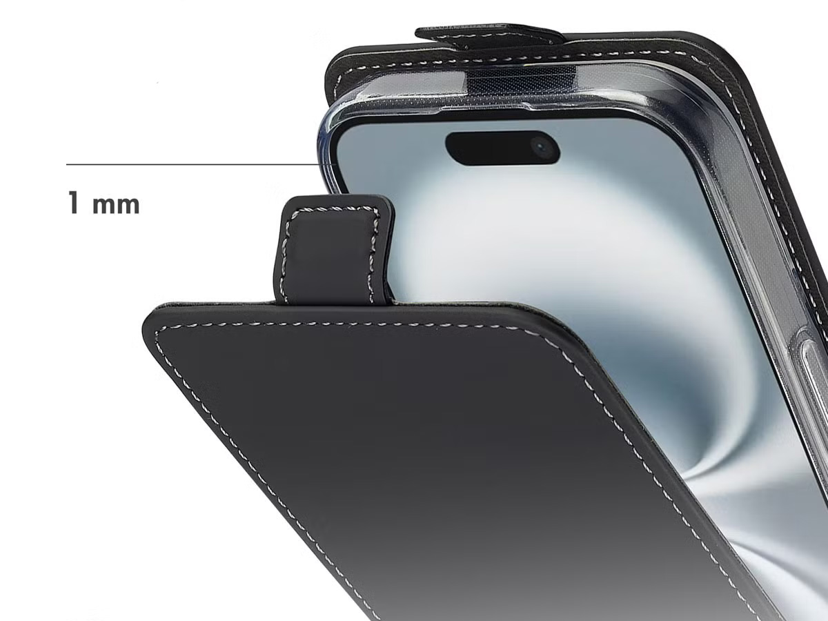 Dankzij het slanke ontwerp voegt deze flipcase nauwelijks extra volume toe aan uw iPhone 16 Pro. Hierdoor past uw telefoon nog steeds gemakkelijk in een broekzak of jaszak. Het kunstleren materiaal en de subtiele afwerking geven de hoes een minimalistische en tijdloze uitstraling.