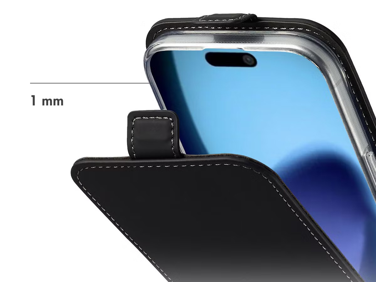 Dankzij het slanke ontwerp voegt deze flipcase nauwelijks extra volume toe aan uw iPhone 17 Air. Hierdoor past uw telefoon nog steeds gemakkelijk in een broekzak of jaszak. Het kunstleren materiaal en de subtiele afwerking geven de hoes een minimalistische en tijdloze uitstraling.