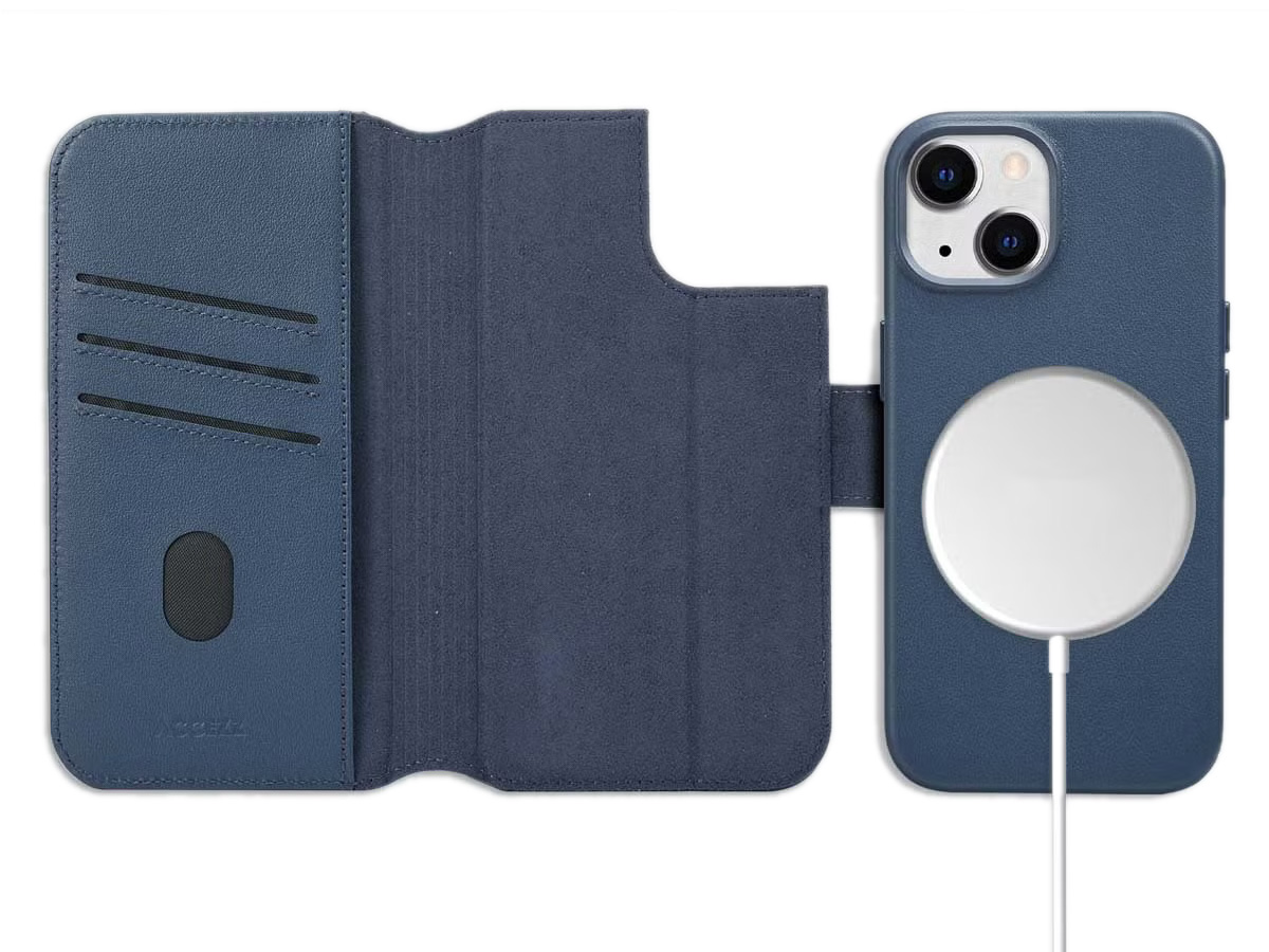 Accezz Leather 2in1 Bookcase MagSafe Donkerblauw - iPhone 14 Hoesje Leer
