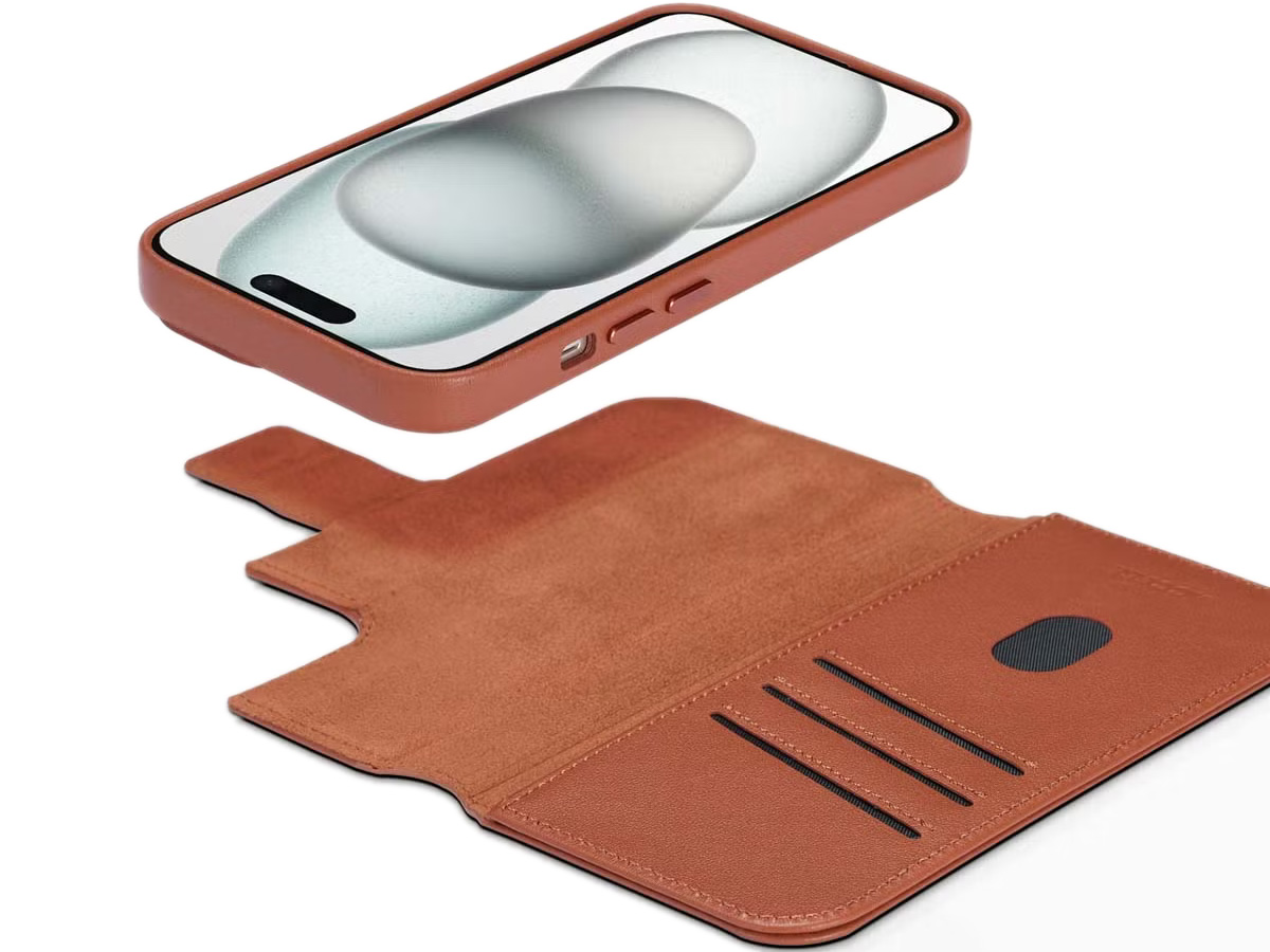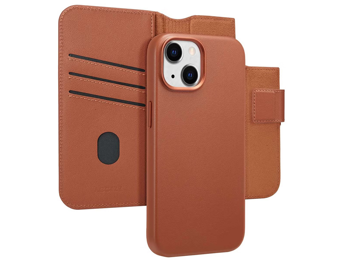 Accezz Leather 2in1 Bookcase MagSafe Cognac - iPhone 15 Hoesje Leer