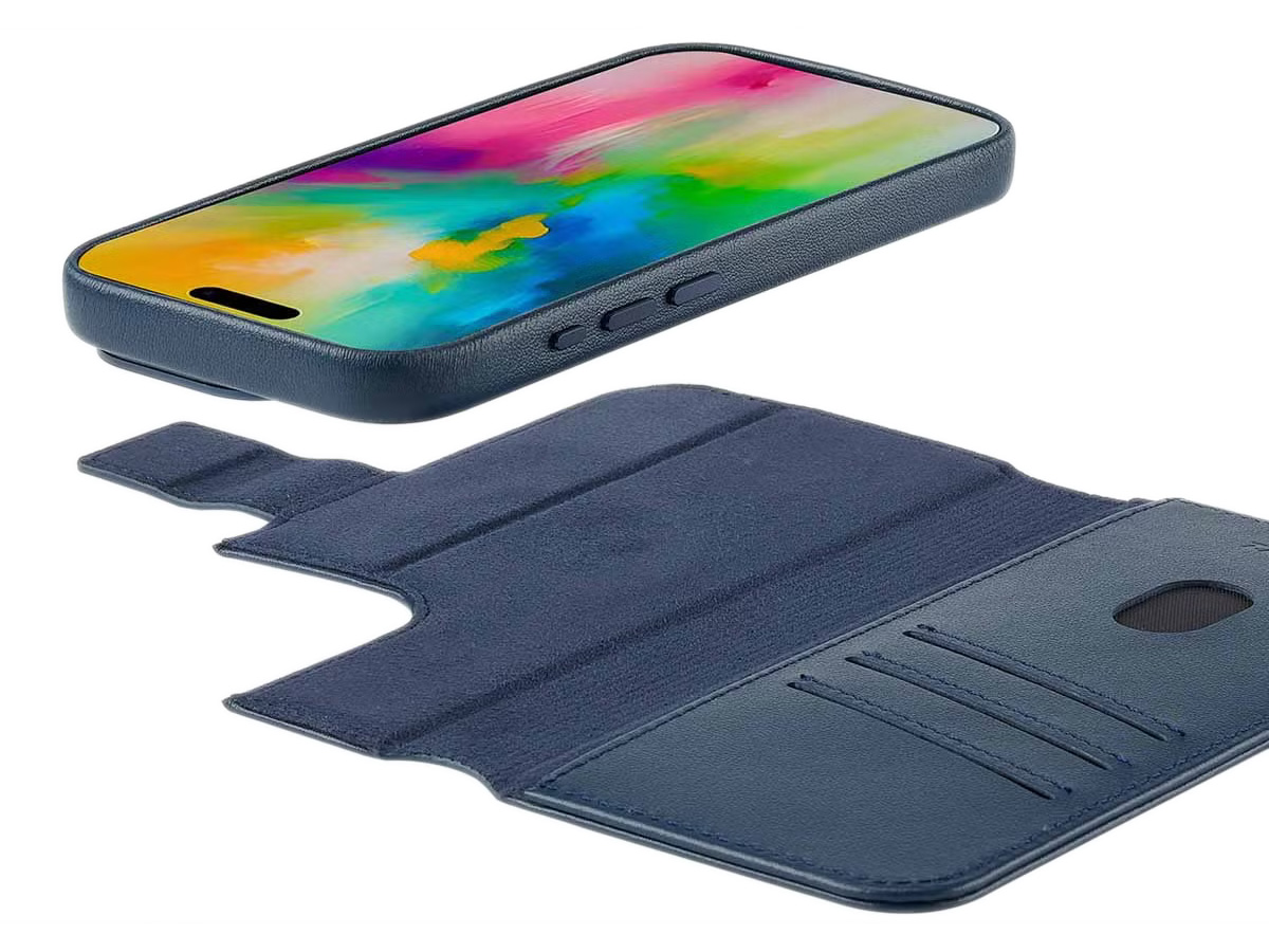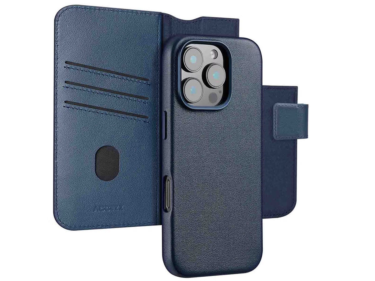 Accezz Leather 2in1 Bookcase MagSafe Donkerblauw - iPhone 15 Pro Hoesje Leer