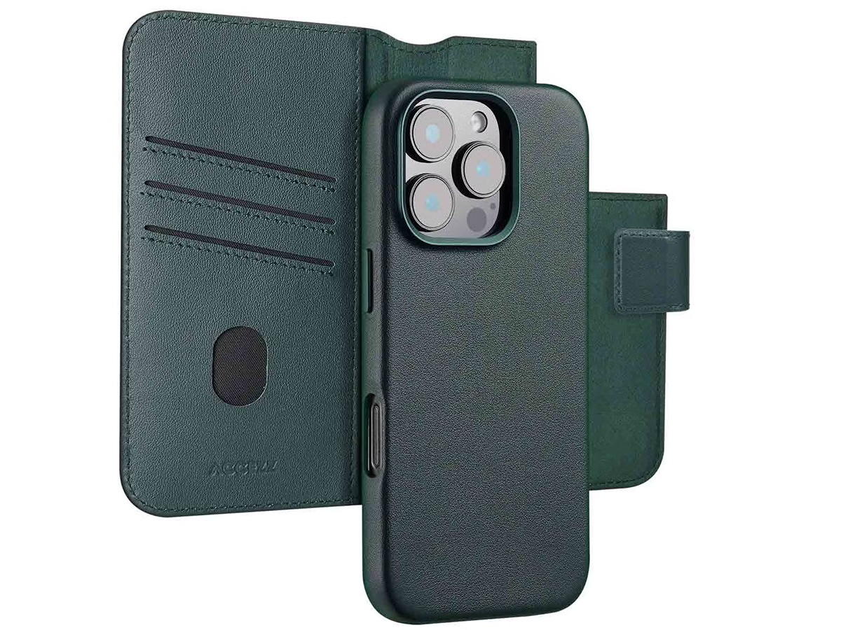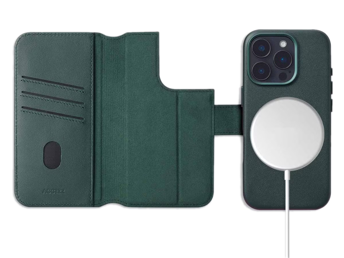 Accezz Leather 2in1 Bookcase MagSafe Groen - iPhone 15 Pro Hoesje Leer
