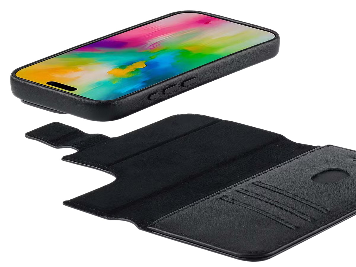 Accezz Leather 2in1 Bookcase MagSafe Zwart - iPhone 15 Pro Hoesje Leer