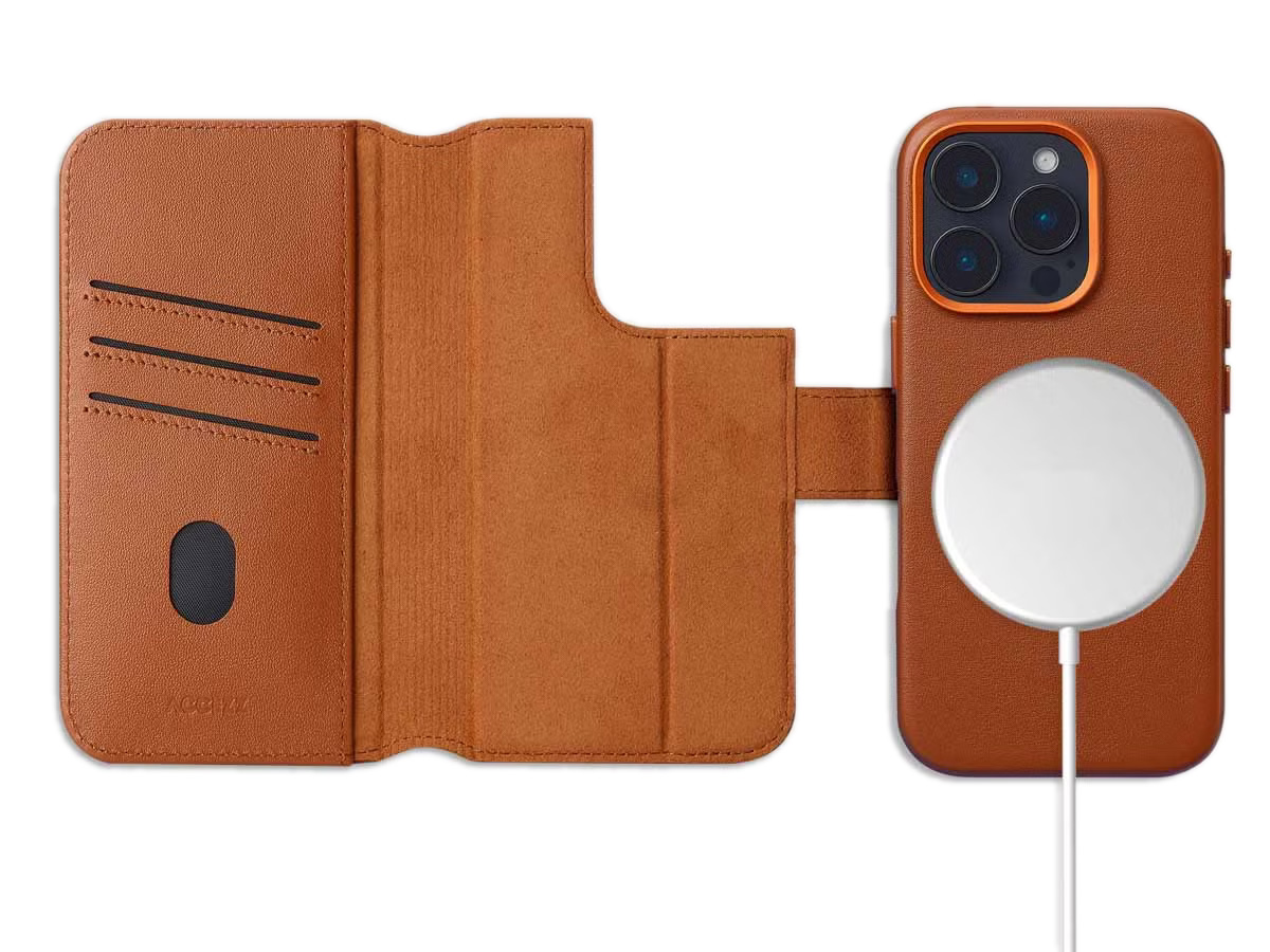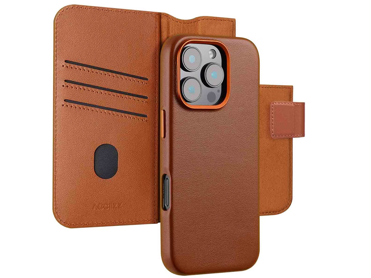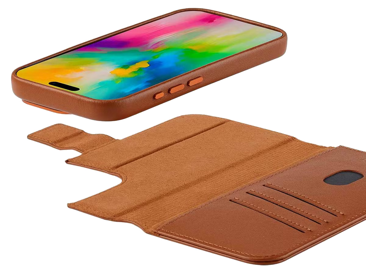 Accezz Leather 2in1 Bookcase MagSafe Cognac - iPhone 15 Pro Max Hoesje Leer