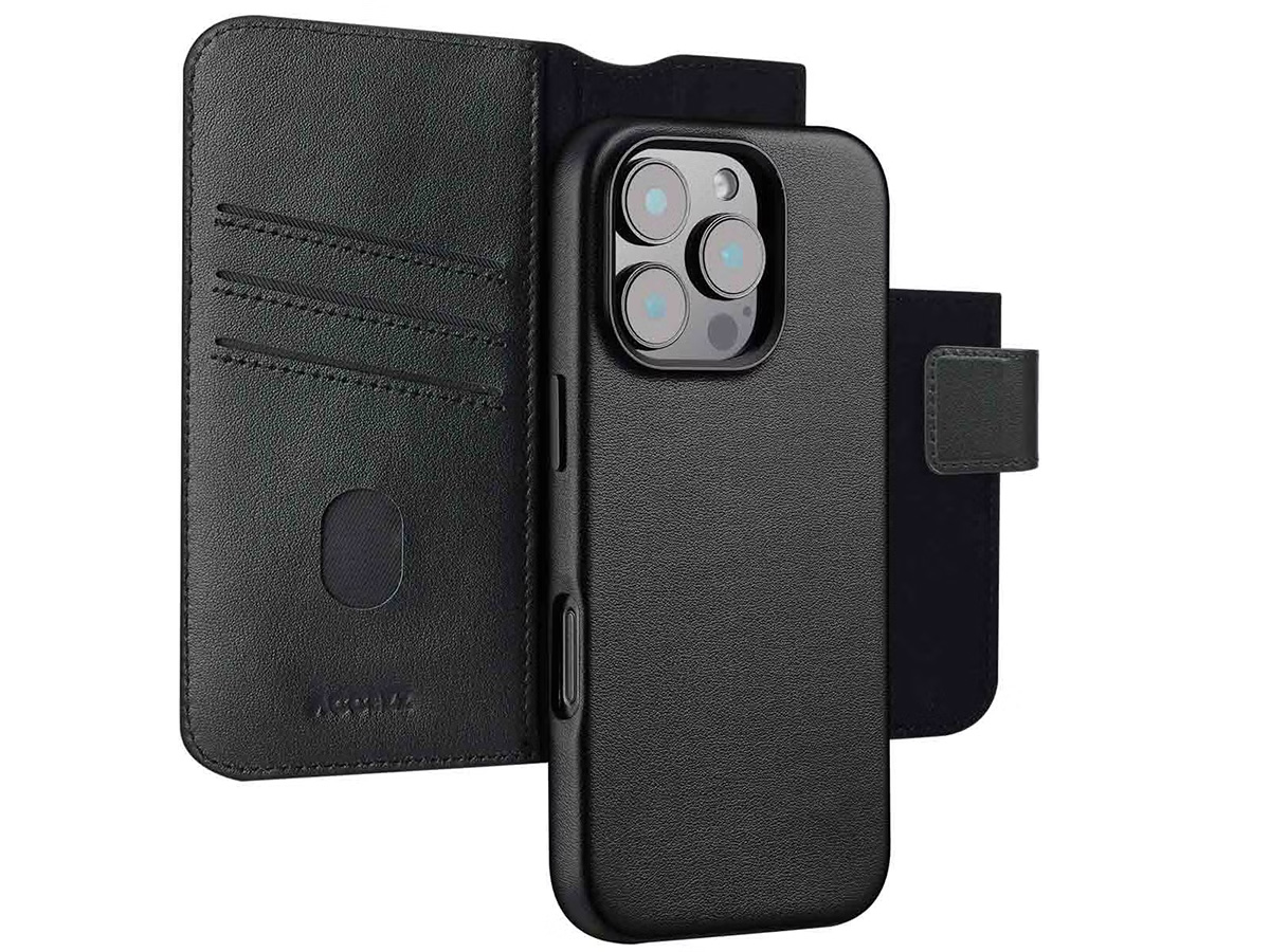 Accezz Leather 2in1 Bookcase MagSafe Zwart - iPhone 16 Pro Max Hoesje Leer