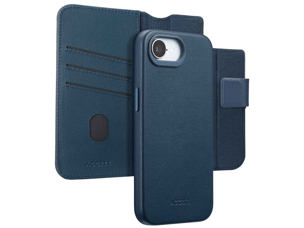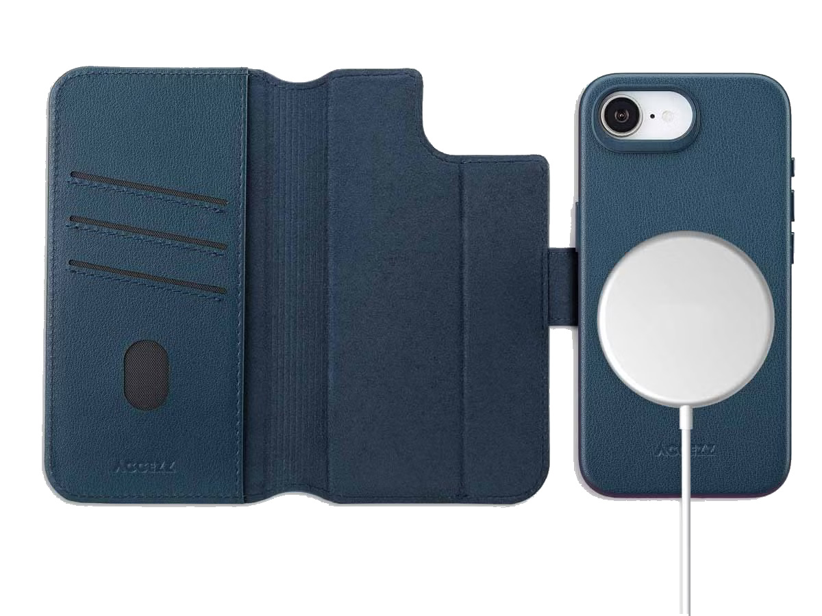 Accezz Leather 2in1 Bookcase MagSafe Blauw - iPhone 16e Hoesje Leer