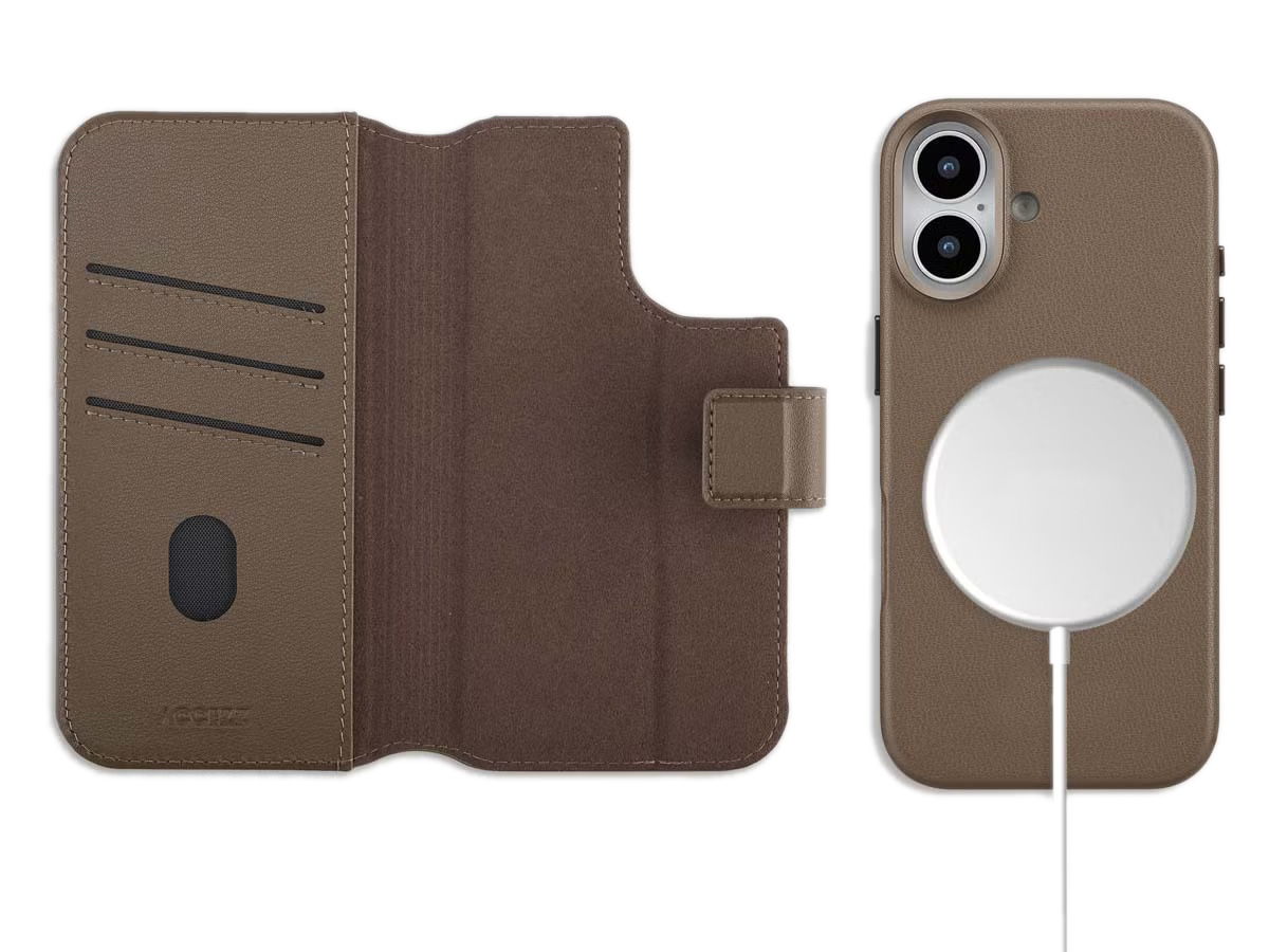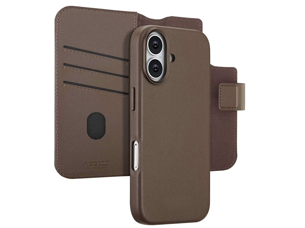 Accezz Leather 2in1 Bookcase MagSafe Bruin - iPhone 17 Hoesje Leer