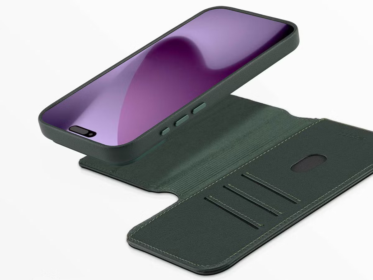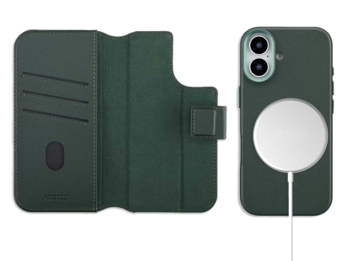 Accezz Leather 2in1 Bookcase MagSafe Groen - iPhone 17 Hoesje Leer