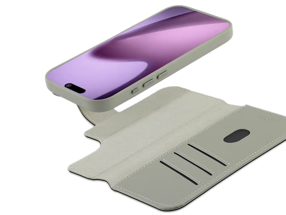 Accezz Leather 2in1 Bookcase MagSafe Grijs - iPhone 17 Hoesje Leer