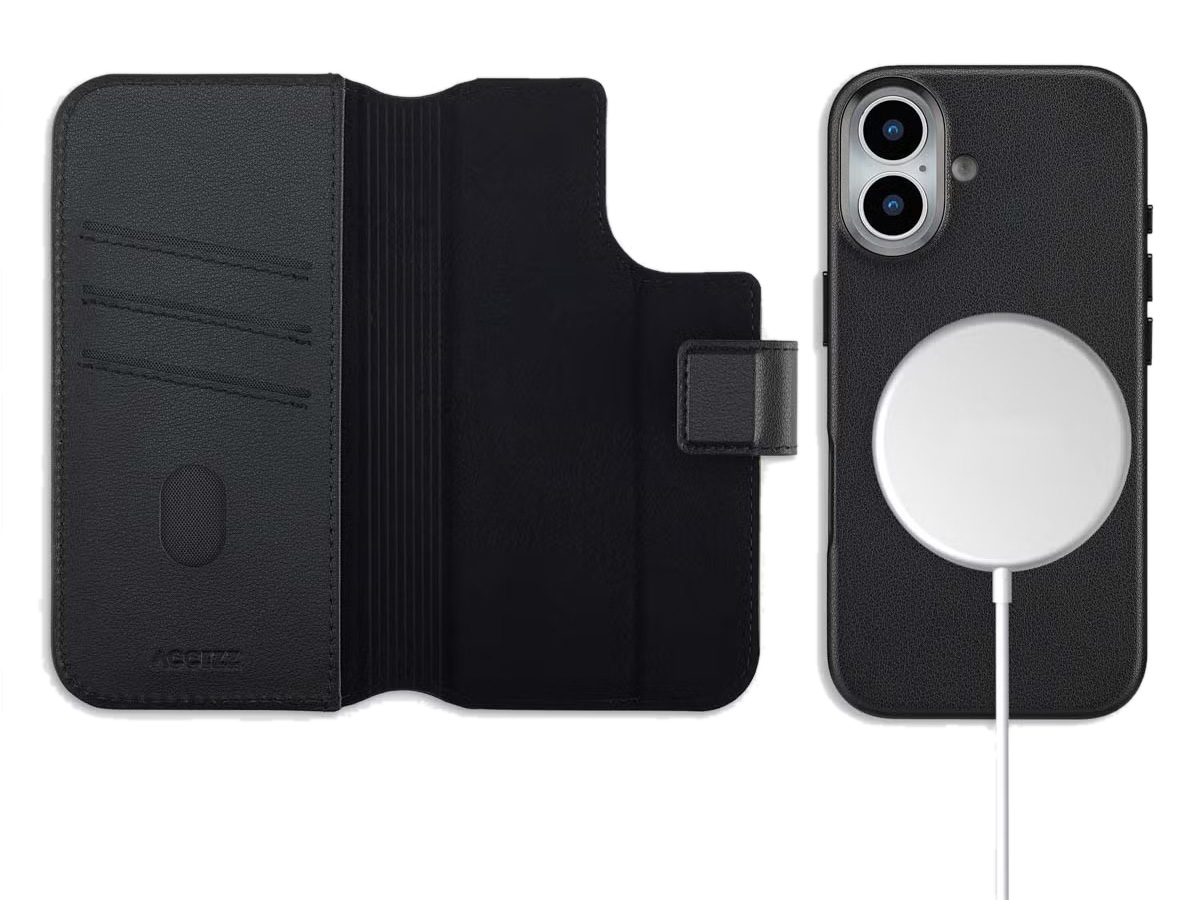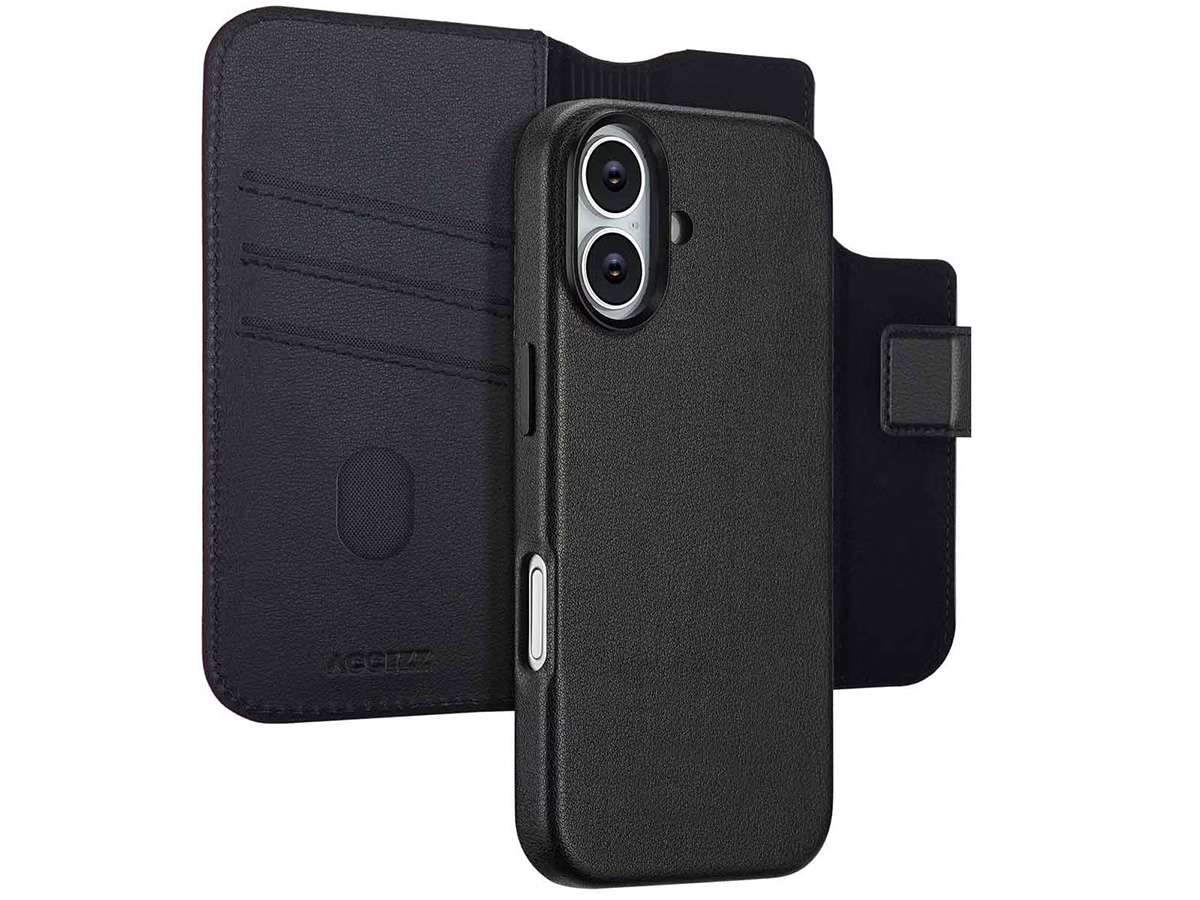 Accezz Leather 2in1 Bookcase MagSafe Zwart - iPhone 17 Hoesje Leer