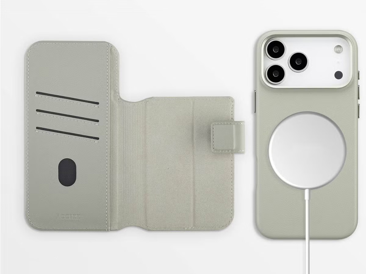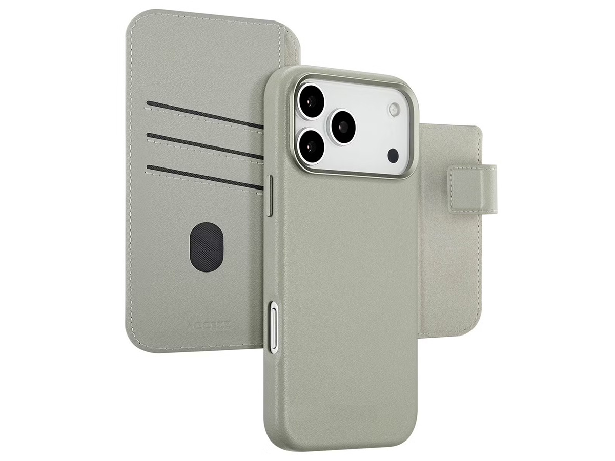 Accezz Leather 2in1 Bookcase MagSafe Grijs - iPhone 17 Pro Max Hoesje Leer