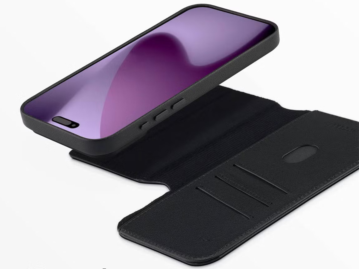 Het leer dat voor deze iPhone 17 Pro Max case gebruikt is, heeft een minimale leernerf en krijgt daardoor een strakke, moderne uitstraling. De wallet omslag is rondom doorgestikt terwijl de case die om uw toestel klikt volledig tot binnenin bekleed is met leer.