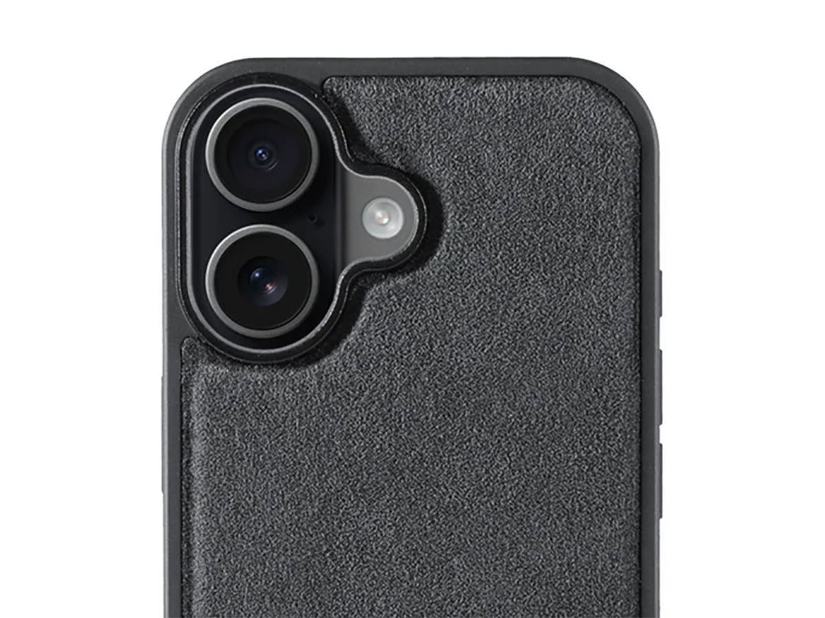 Dit Alcantara iPhone hoesje van Alcanside werd speciaal voor de iPhone 17 ontworpen en past dan ook als gegoten om het toestel. Hierbij is rekening gehouden met alle toetsen en zijn er openingen voor de USB-C aansluiting, de camera control button en de camera's.