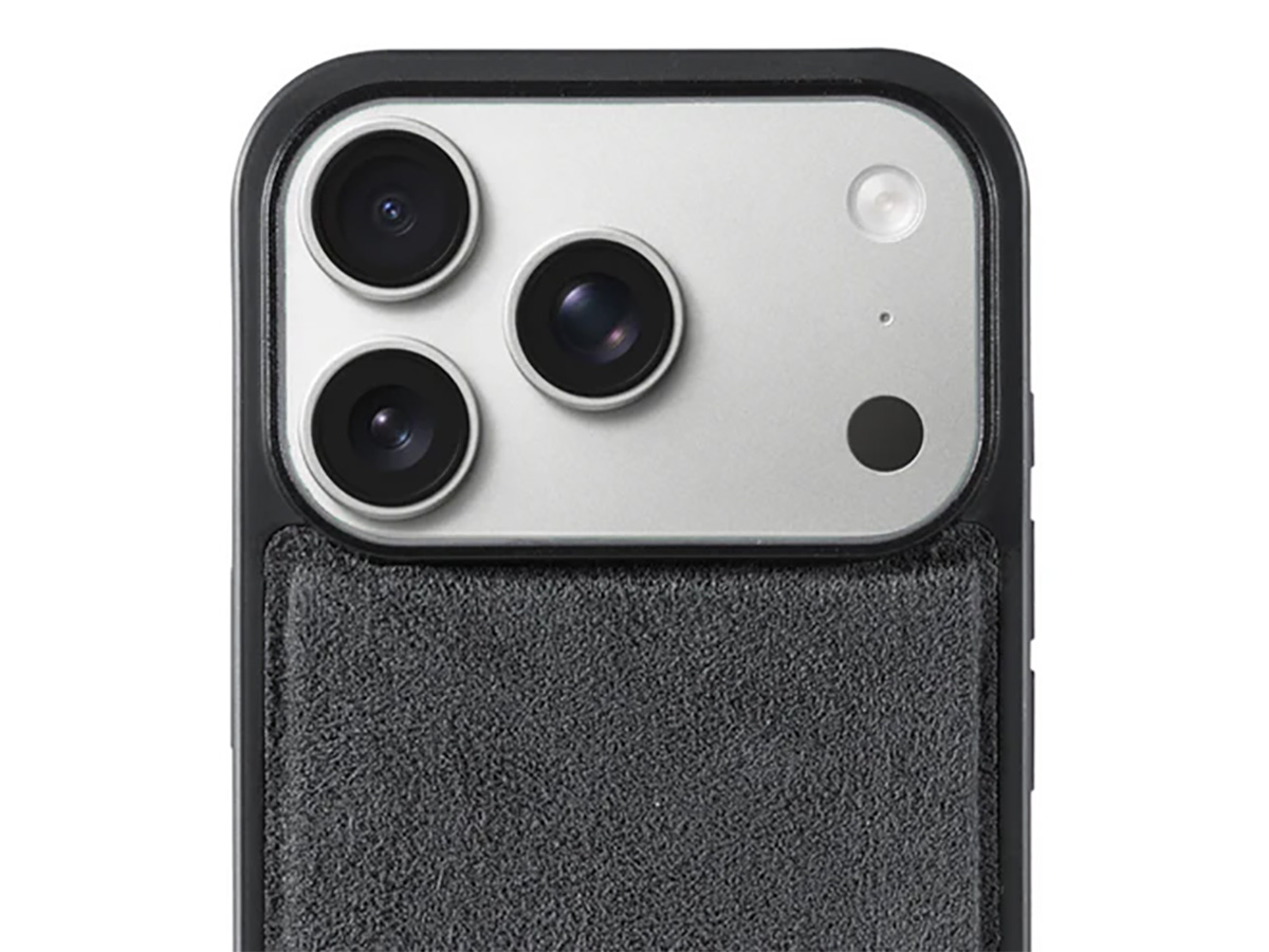 Dit Alcantara iPhone hoesje van Alcanside werd speciaal voor de iPhone 17 Pro Max ontworpen en past dan ook als gegoten om het toestel. Hierbij is rekening gehouden met alle toetsen en zijn er openingen voor de USB-C aansluiting, de camera control button en de camera's.