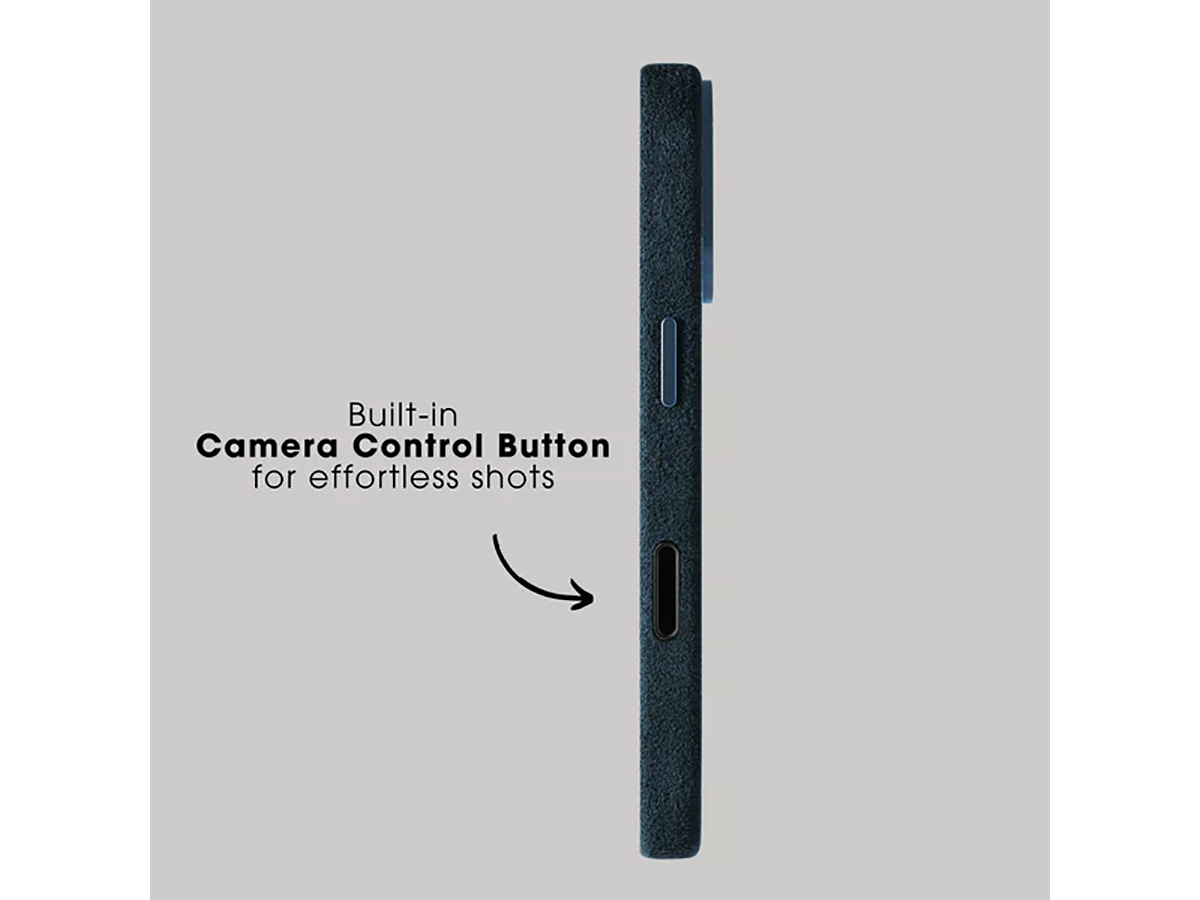Dit Alcantara iPhone hoesje van Alcanside werd speciaal voor de iPhone 17 ontworpen en past dan ook als gegoten om het toestel. Hierbij is rekening gehouden met alle toetsen, de USB-C aansluiting en de camera's. De case is bovendien voorzien van een geïntegreerde camera-button. Het iPhone 17 hoesje bedekt de achterzijde, alle randen en hoeken en vormt bovendien een beschermend opstaand randje rond het scherm en de camera.