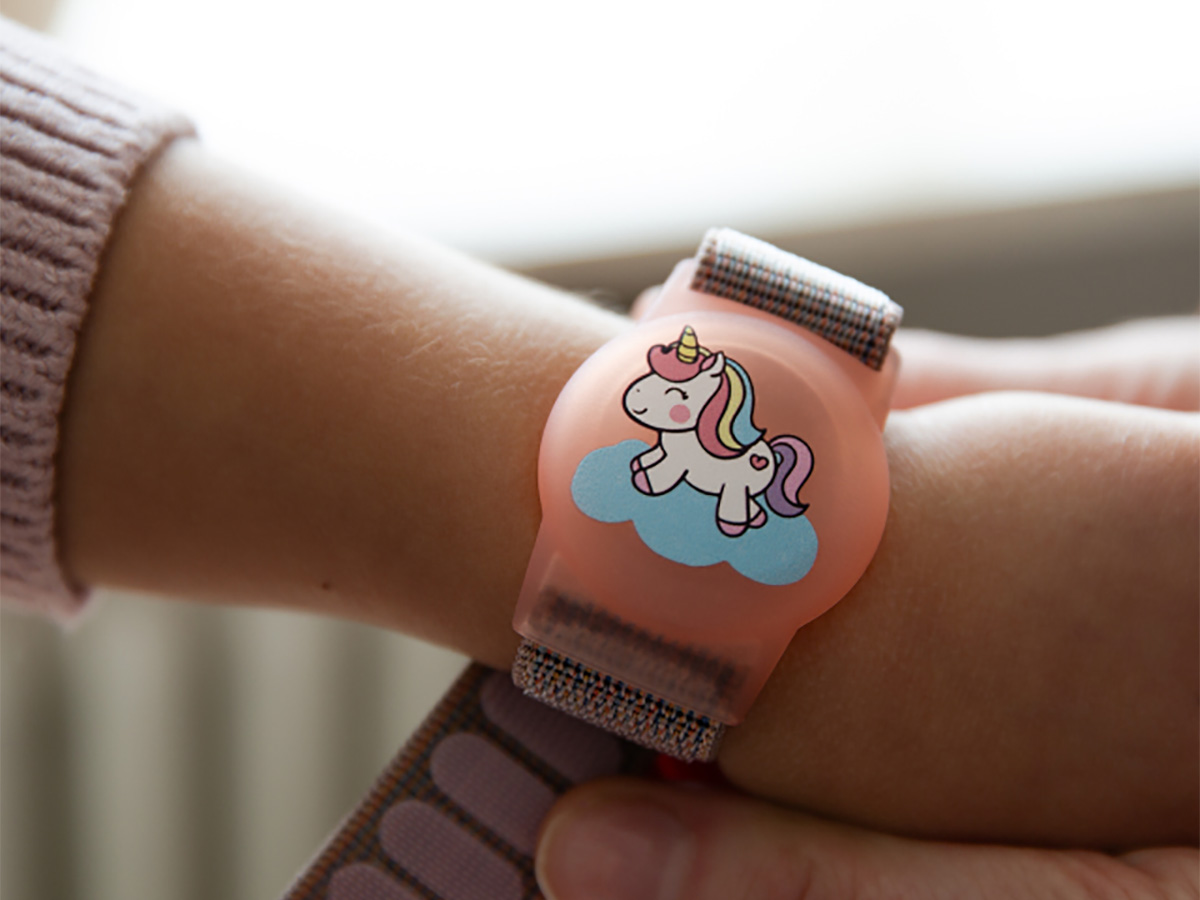 De polsband is licht van gewicht en voorzien van een verstelbare klittenbandsluiting. Hierdoor is de band eenvoudig aan te passen aan verschillende kinderpolsen en blijft hij stevig zitten tijdens dagelijkse activiteiten zoals spelen, rennen of naar school gaan.