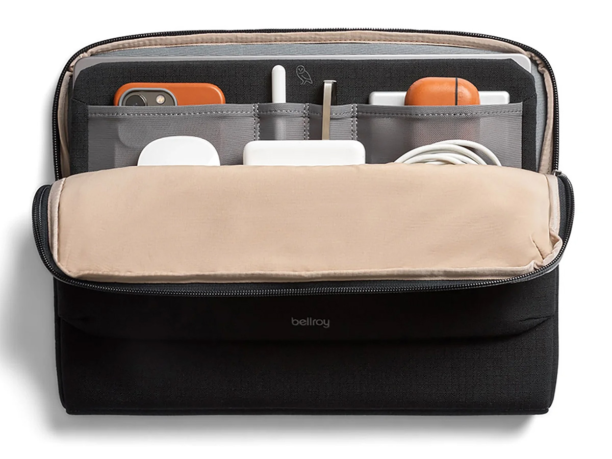 De Bellroy Laptop Caddy is ontworpen om al je werktools samen te brengen in één overzichtelijke laptop sleeve. Naast je laptop is er ruimte voor accessoires zoals een muis, oplader, kabels, externe harde schijf of oordopjes. Dankzij de slimme indeling met stretch mesh vakken en pennenhouders blijft alles netjes georganiseerd.