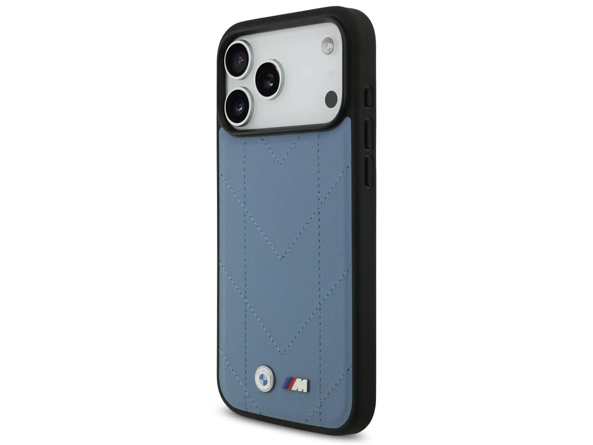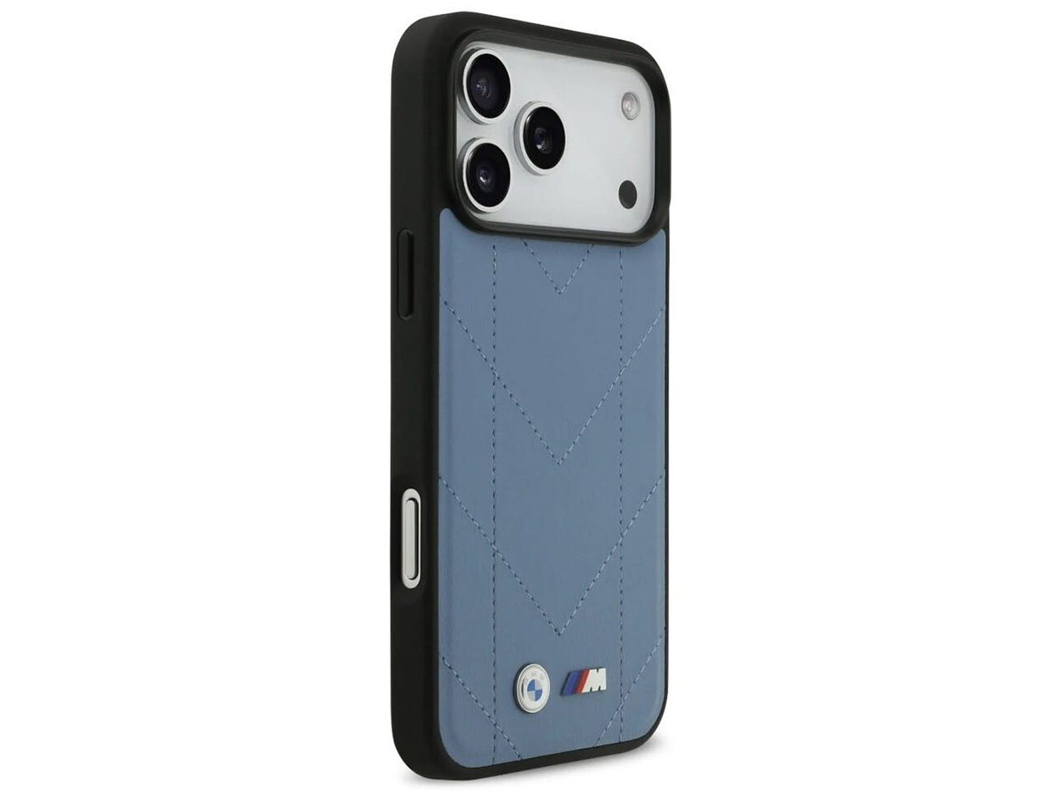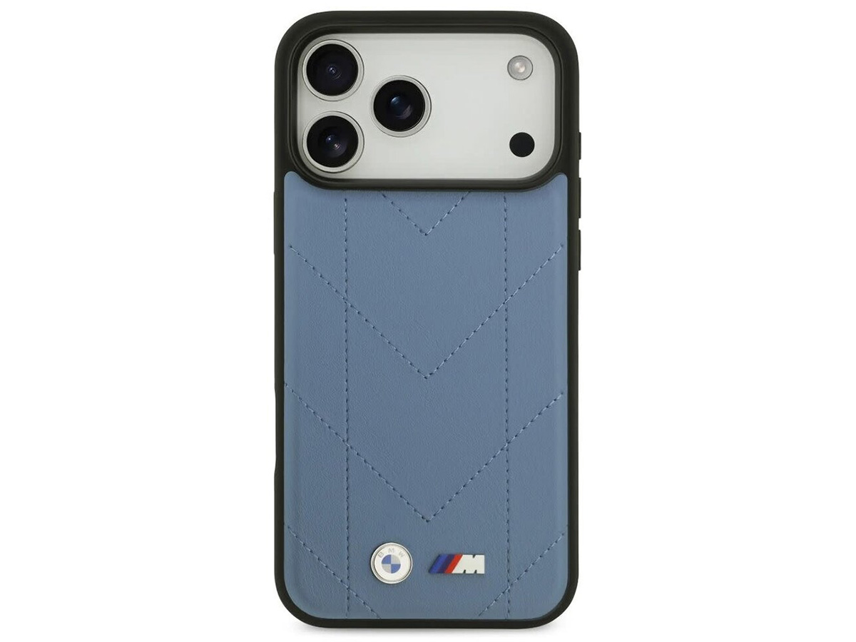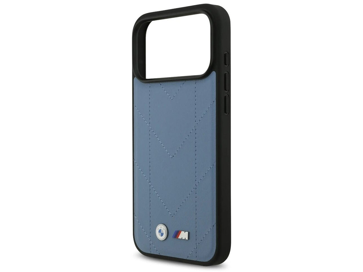 BMW M iPhone 17 Pro Max hoesje - Stitched Leather Case met MagSafe Blauw