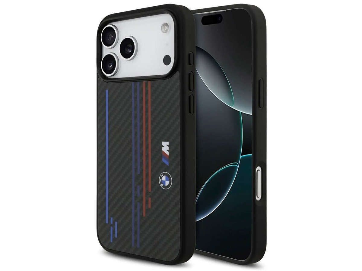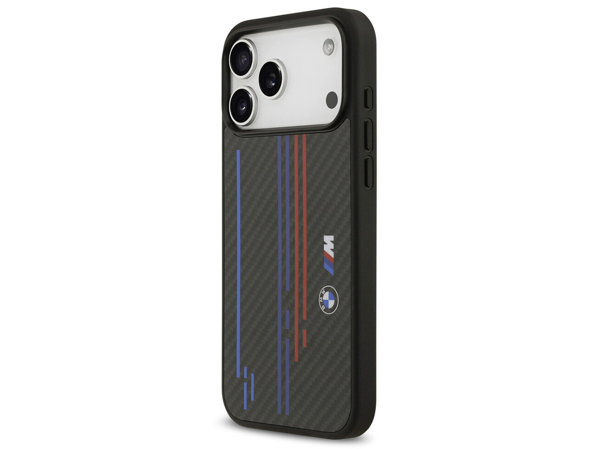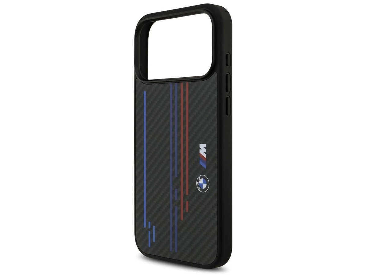 BMW M iPhone 17 Pro Max hoesje - Carbon Fiber Tricolor Case met MagSafe