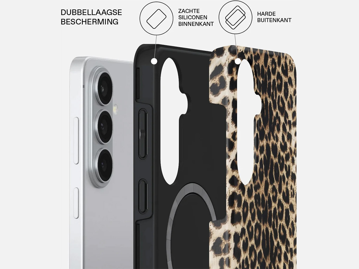 Met de Burga collectie geef je jouw Samsung Galaxy S26 een persoonlijke touch. Hoogwaardige prints zoals deze luipaardprint blijven kleurvast en slijtvast, terwijl de elegante hoogglans coating het hoesje een luxe uitstraling geeft. Zo verandert je telefoon in een fashionable accessoire dat opvalt.