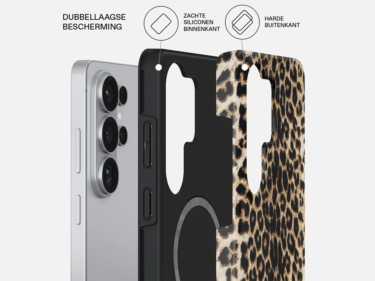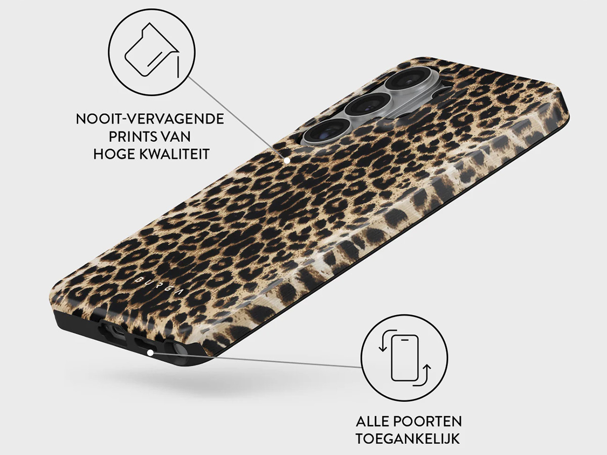 Met de Burga collectie geef je jouw Samsung Galaxy S26 Ultra een persoonlijke touch. Hoogwaardige prints zoals deze luipaardprint blijven kleurvast en slijtvast, terwijl de elegante hoogglans coating het hoesje een luxe uitstraling geeft. Zo verandert je telefoon in een fashionable accessoire dat opvalt.