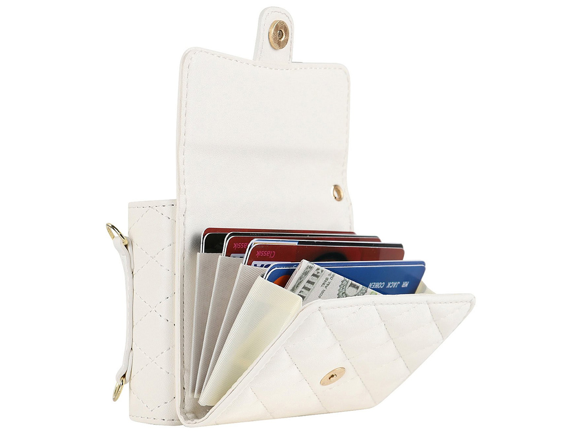 Op de achterzijde van dit Samsung Galaxy Z Flip 7 hoesje vindt u een vakje met een drukknoopsluiting. Binnenin dit vakje zijn er 4 afzonderlijke vakken waarin u pasjes en briefgeld kunt opbergen. Het vakje heeft een RFID werende lining zodat u veilig bent voor skimmers.