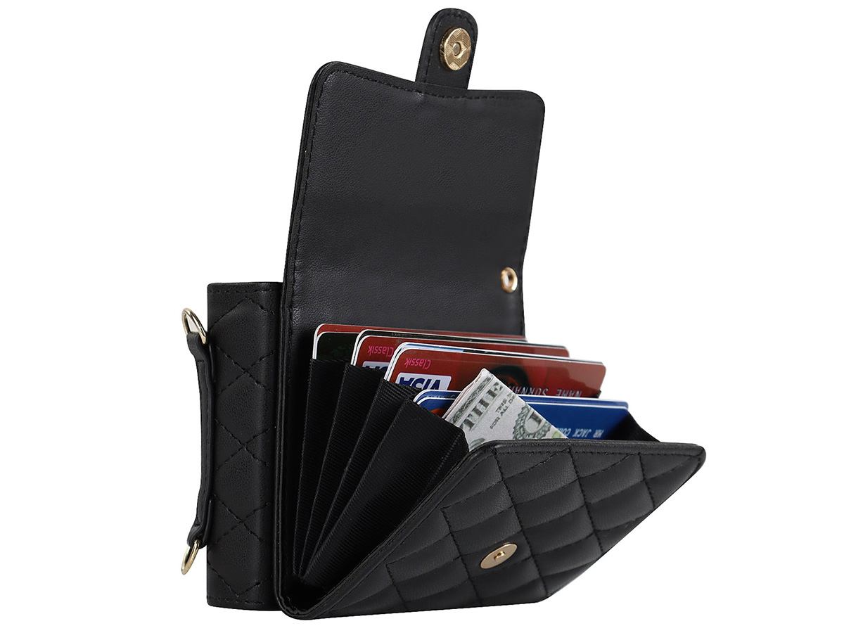 Op de achterzijde van dit Samsung Galaxy Z Flip 7 hoesje vindt u een vakje met een drukknoopsluiting. Binnenin dit vakje zijn er 4 afzonderlijke vakken waarin u pasjes en briefgeld kunt opbergen. Het vakje heeft een RFID werende lining zodat u veilig bent voor skimmers.