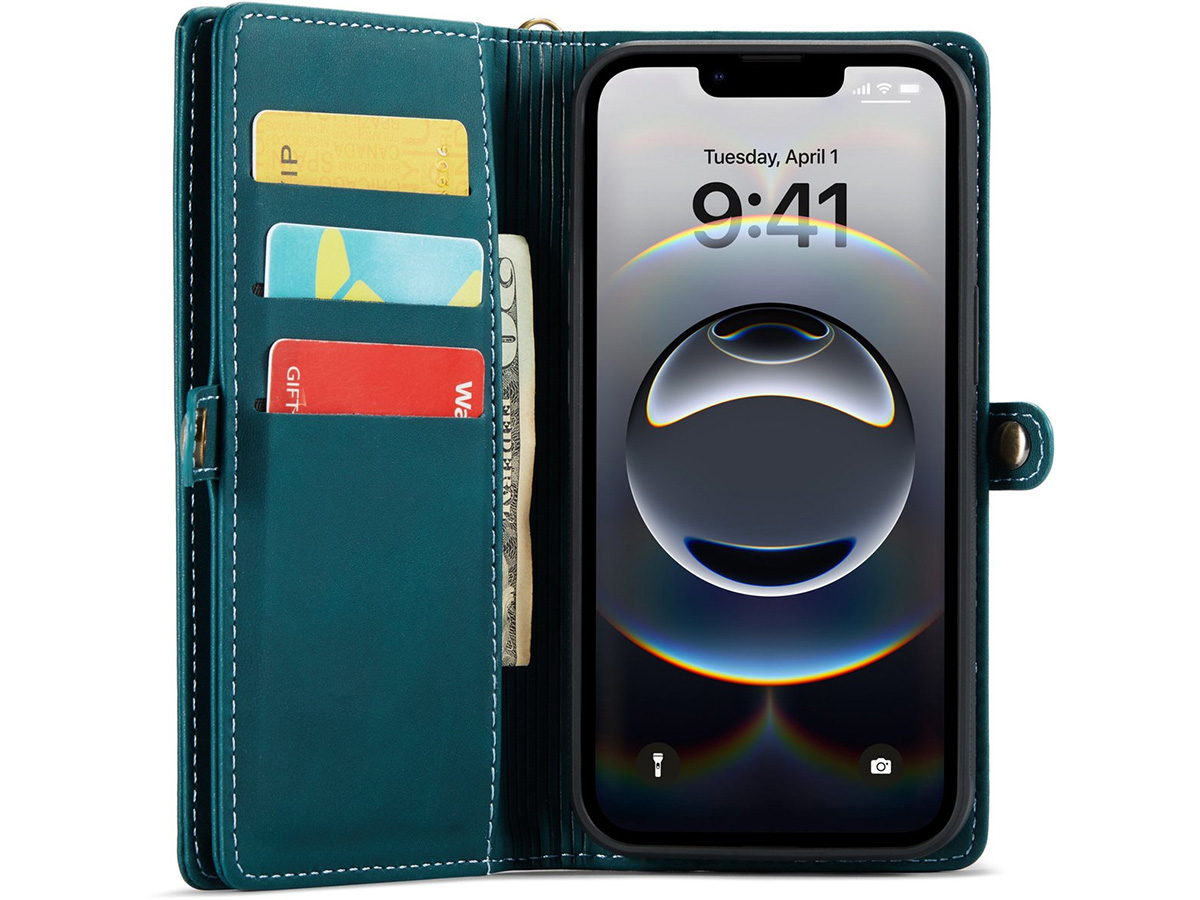 Door al deze bergruimte is deze hoes natuurlijk een stukje dikker dan een normaal hoesje. In het gebruik zult u hier echter weinig last van hebben, doordat CaseMania het iPhone 17 Pro hoesje magnetisch uitneembaar gemaakt heeft! Hierdoor kunt u op elk gewenst moment uw telefoon losmaken van de rest van de case en hem probleemloos in een autohouder plaatsen of aan uw oor houden tijdens het bellen. En zodra u op pad gaat, zit hij zo weer vast in de portemonnee omslag!