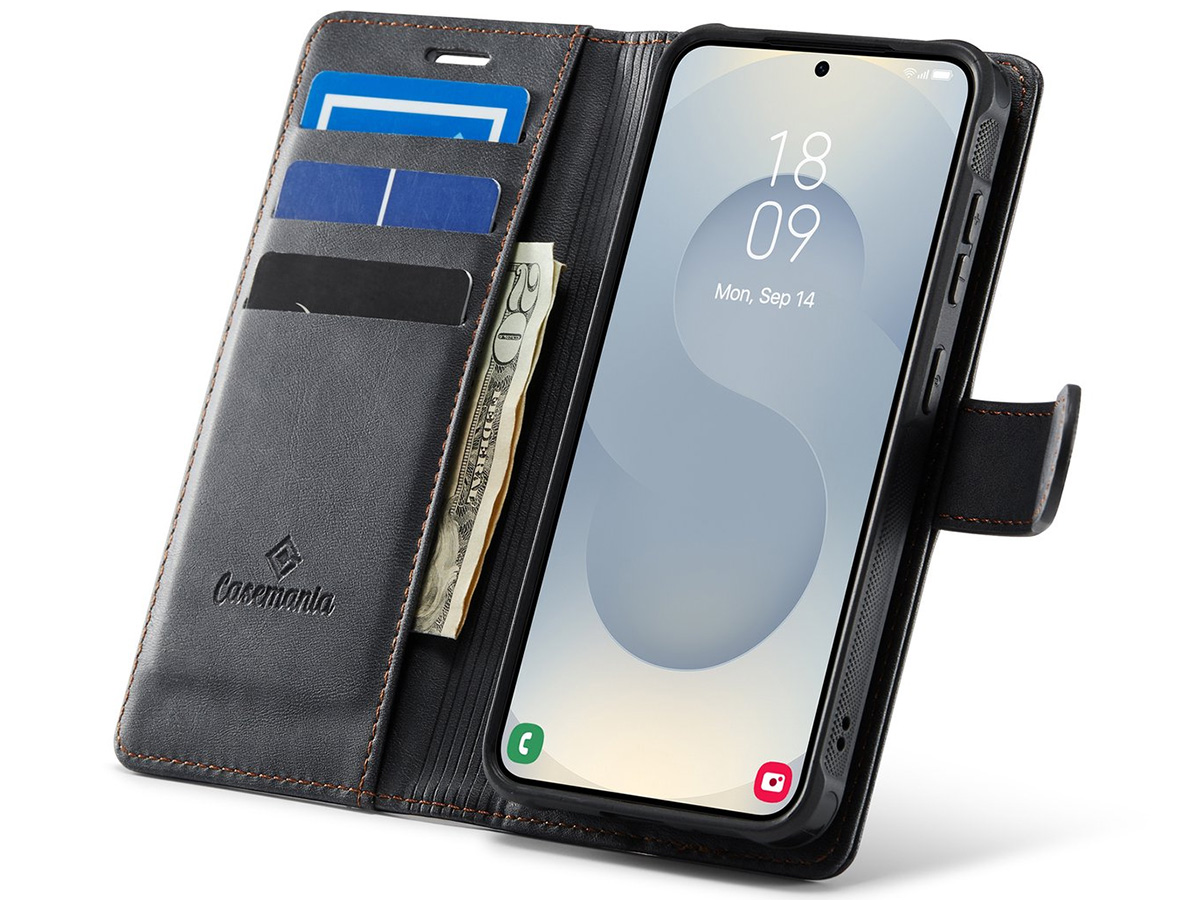 CaseMania 2in1 Bookcase Qi2 Zwart - Samsung Galaxy S26 Hoesje