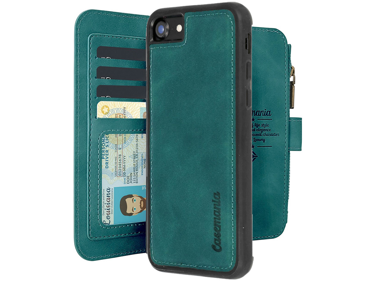 CaseMania 2in1 Wallet Ritsvak Case Groen - iPhone SE/8/7 Hoesje