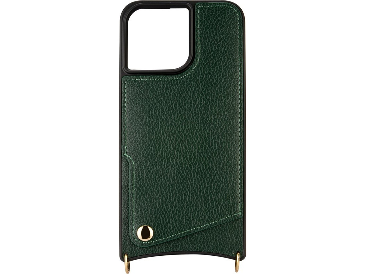 CaseMania Crossbody Card Case met Koord - iPhone 13 Hoesje Donkergroen