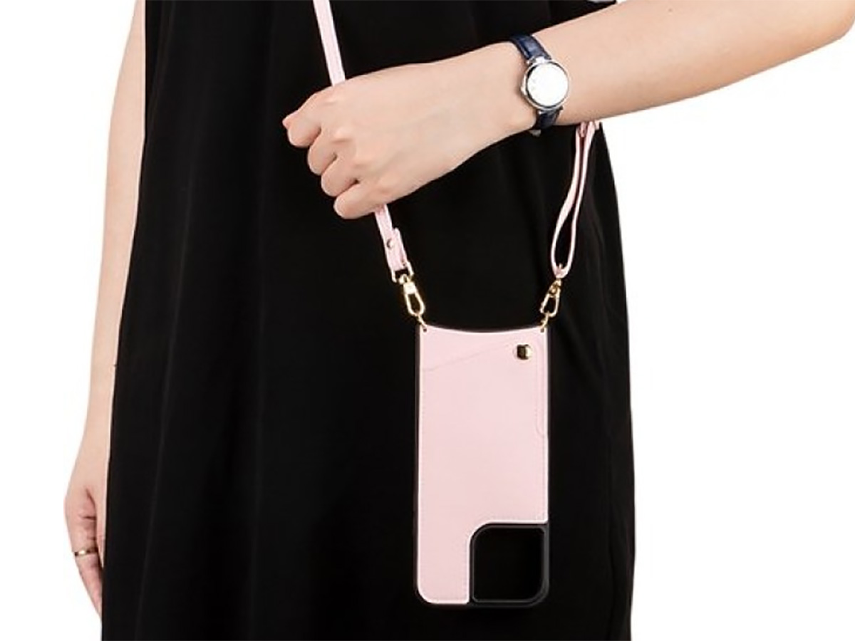 CaseMania Crossbody Card Case met Koord - iPhone 13 Hoesje Roze