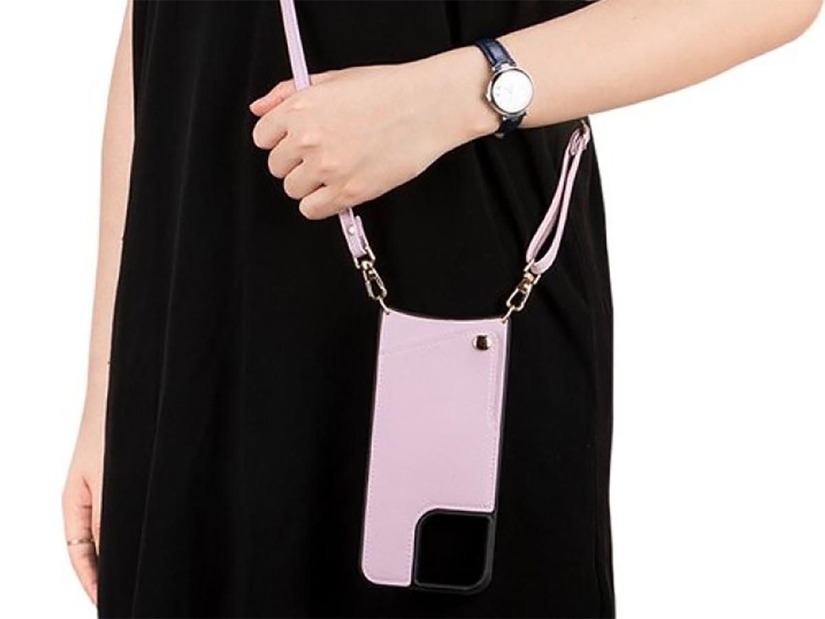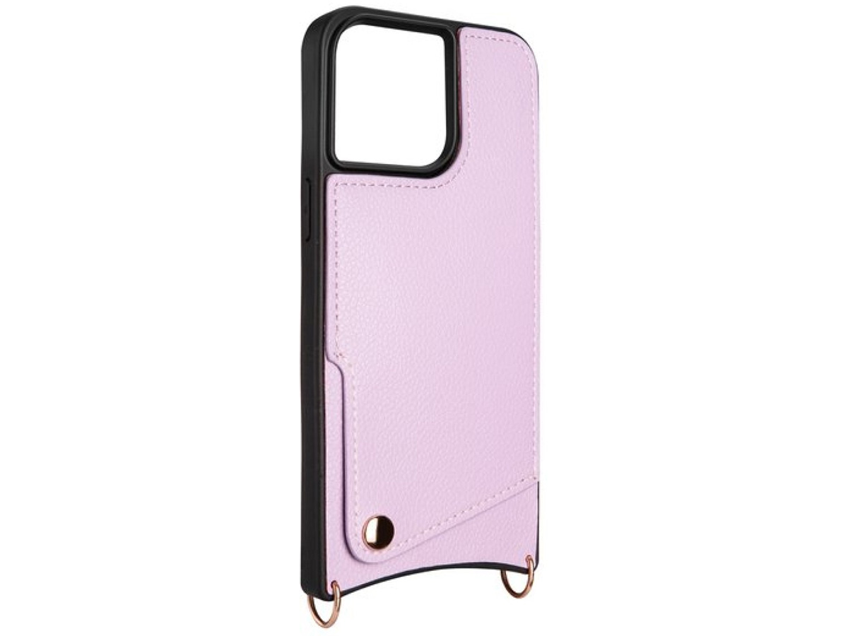 CaseMania Crossbody Card Case met Koord - iPhone 15 Hoesje Lila Paars