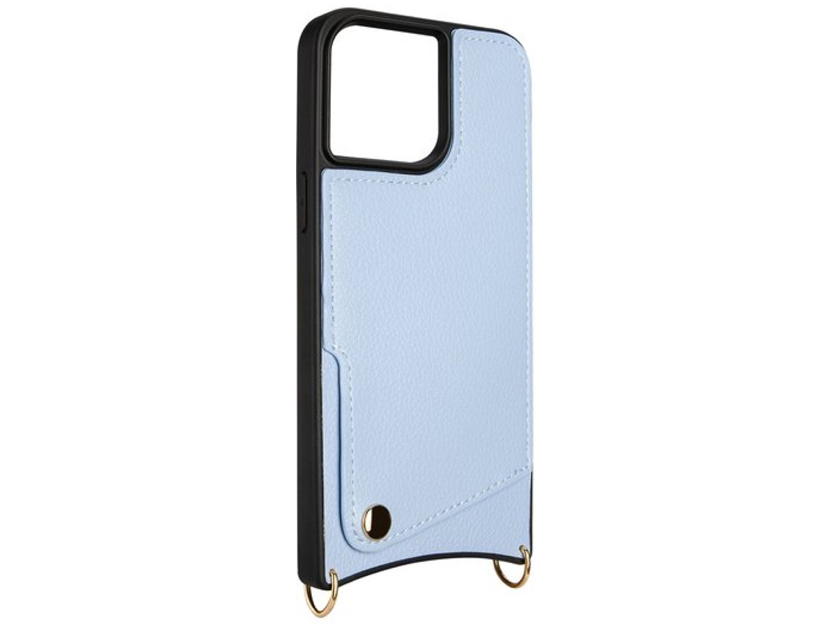CaseMania Crossbody Card Case met Koord - iPhone 15 Pro Hoesje Blauw