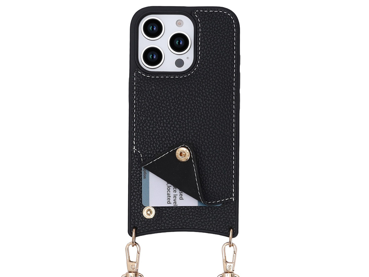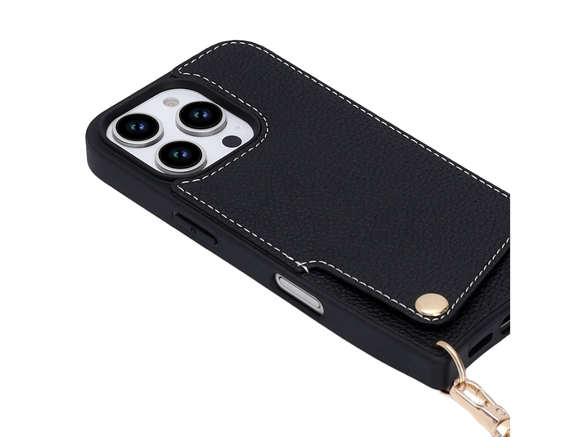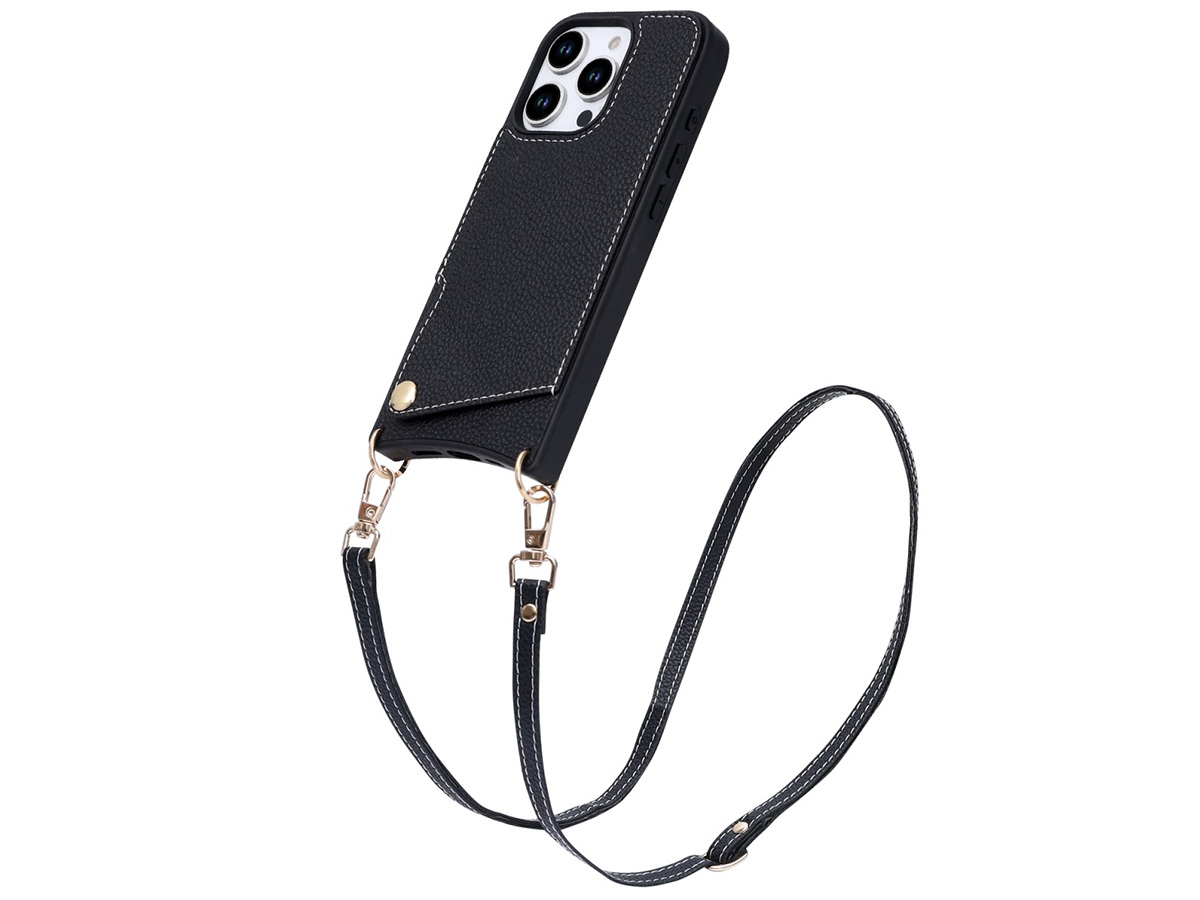 CaseMania Crossbody Card Case met Koord - iPhone 15 Pro Max Hoesje Zwart