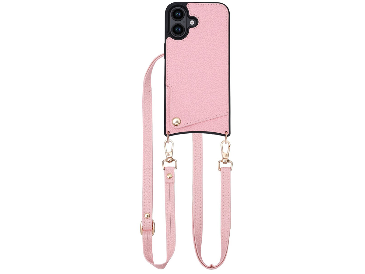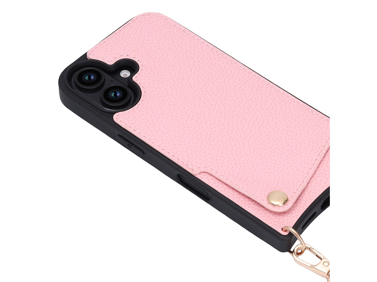 CaseMania Crossbody Card Case met Koord - iPhone 16 Plus Hoesje Roze
