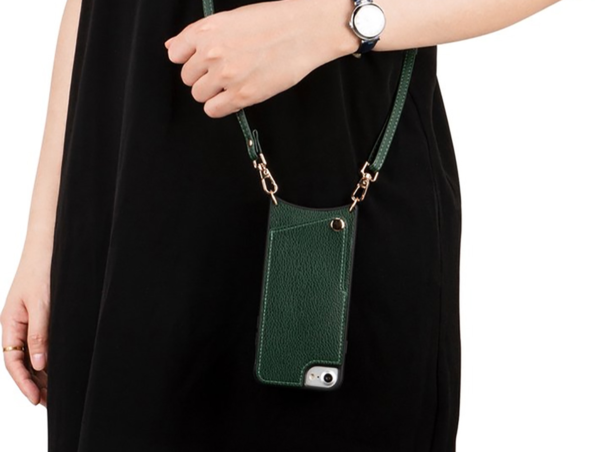 CaseMania Crossbody Card Case met Koord - iPhone SE/8/7 Hoesje Donkergroen