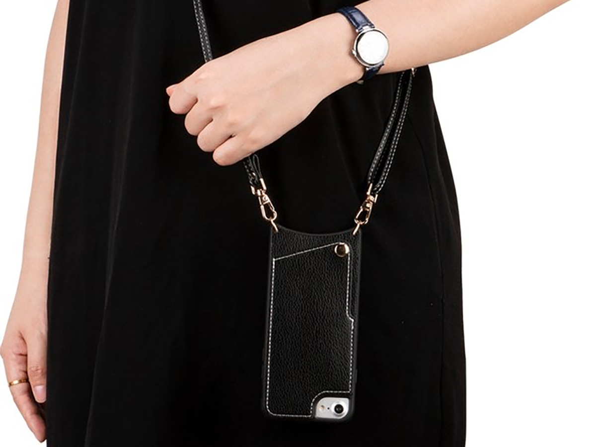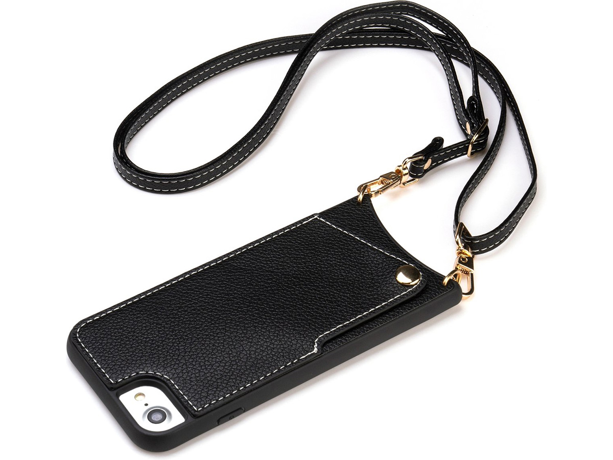 CaseMania Crossbody Card Case met Koord - iPhone SE/8/7 Hoesje Zwart