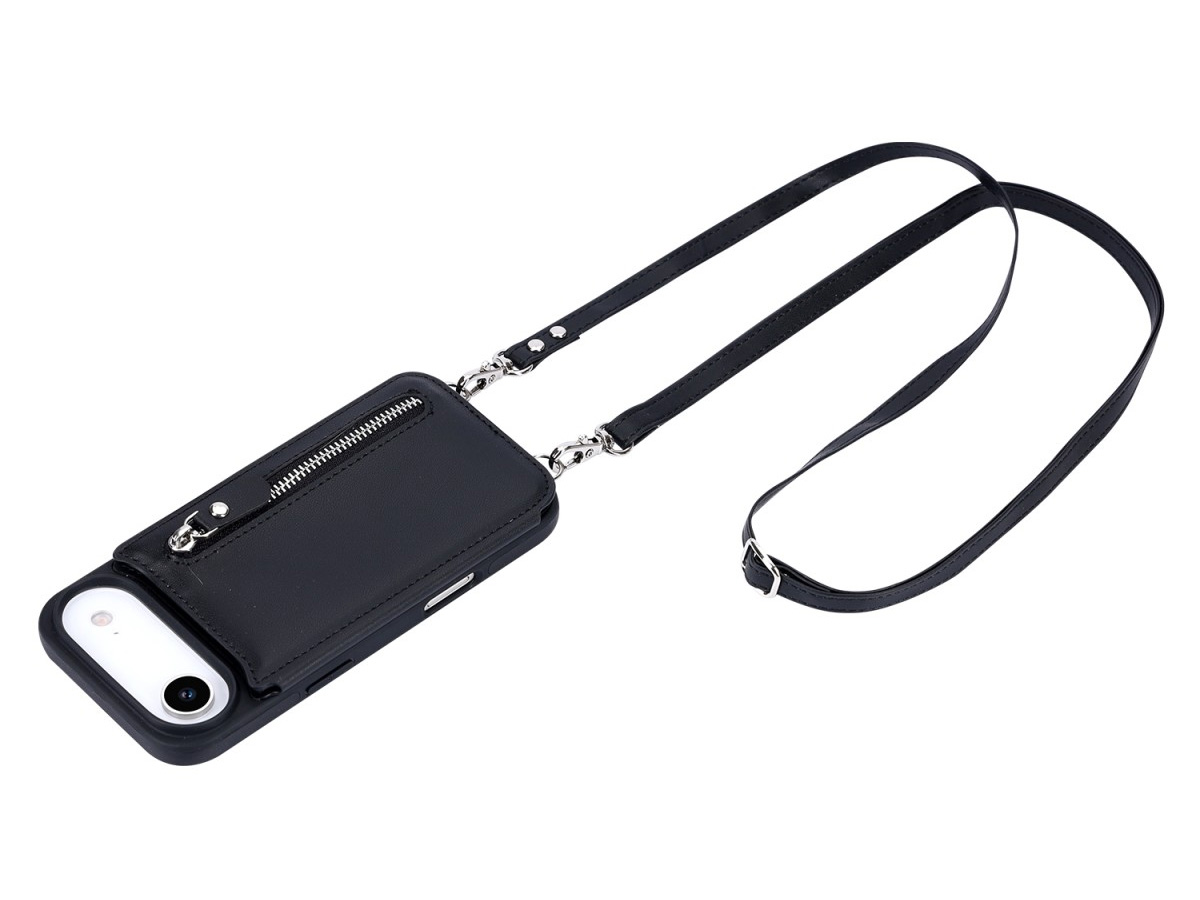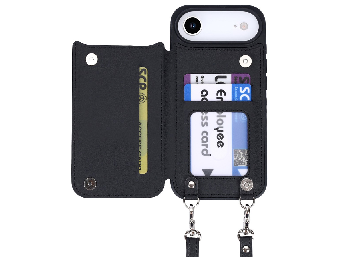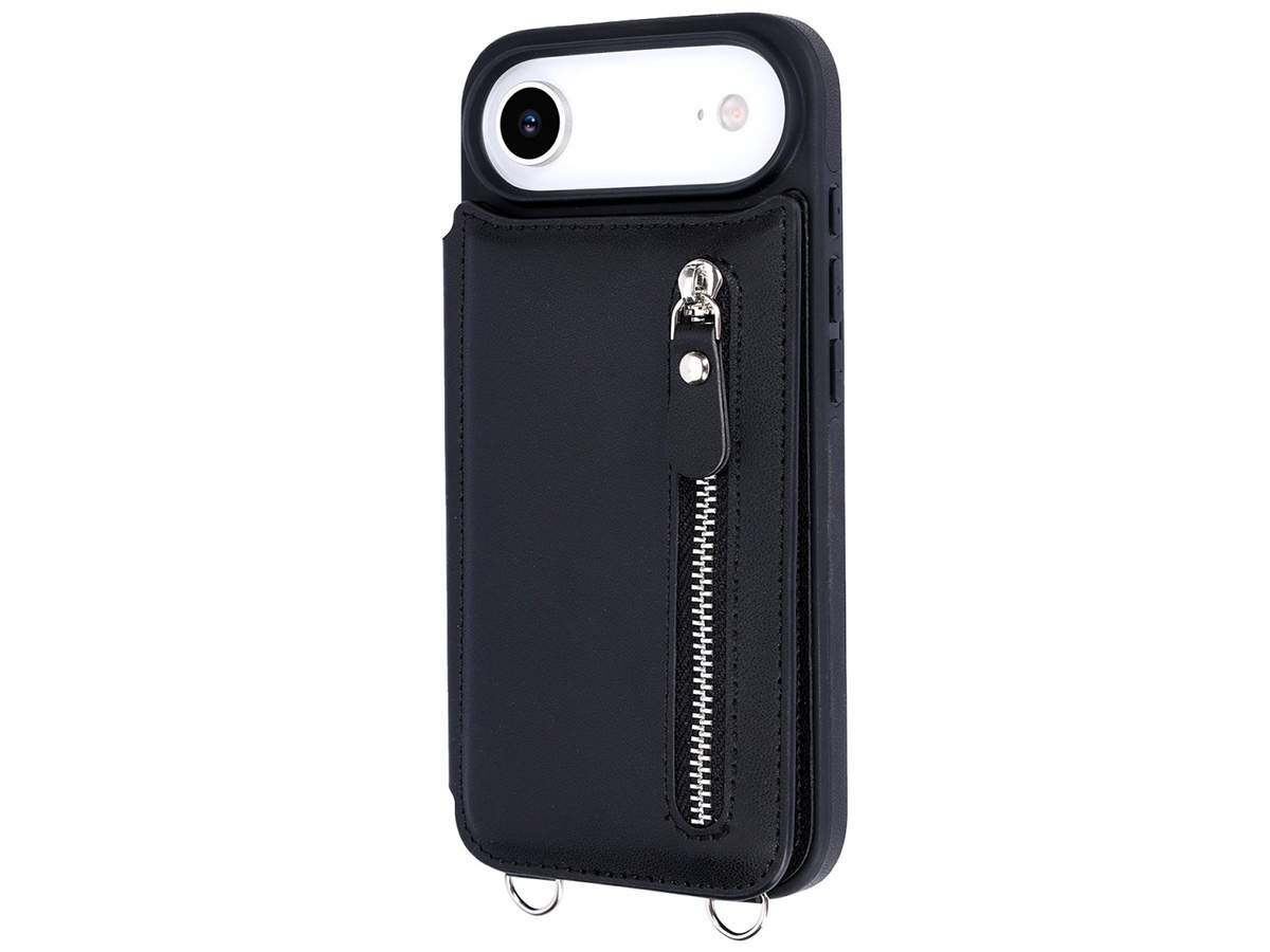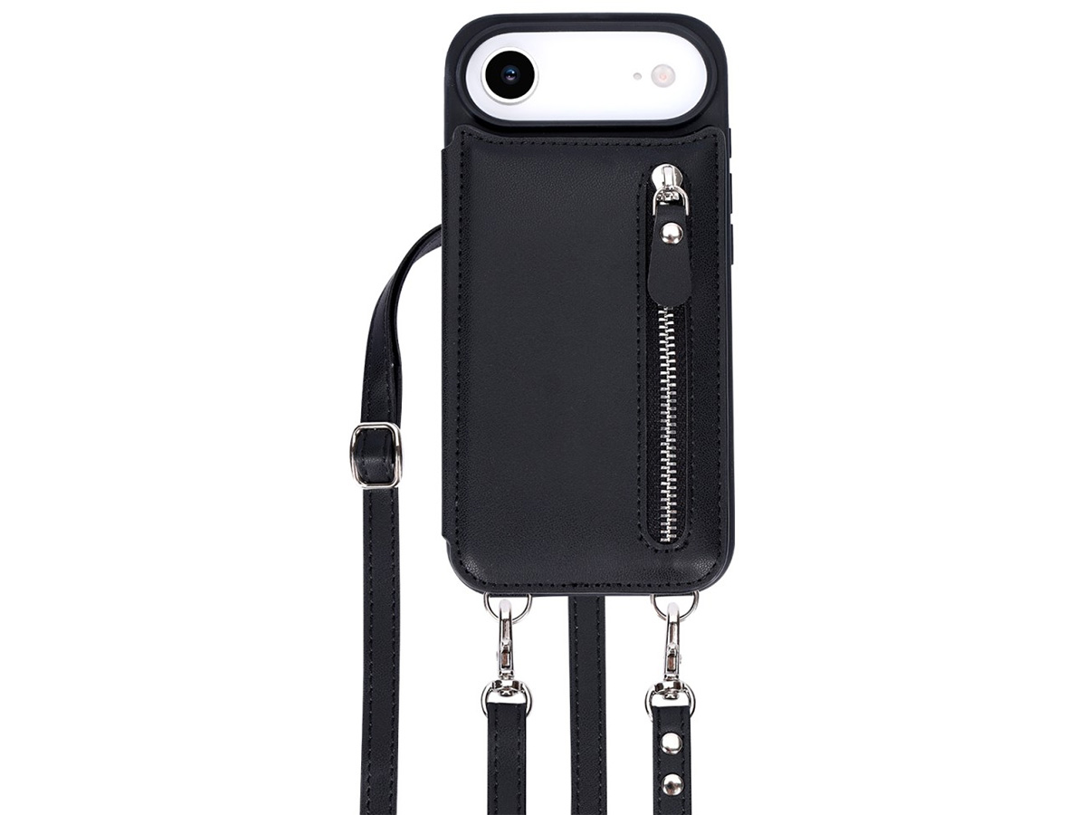 CaseMania Crossbody Wallet Case met Koord - iPhone 17 Air Hoesje Zwart
