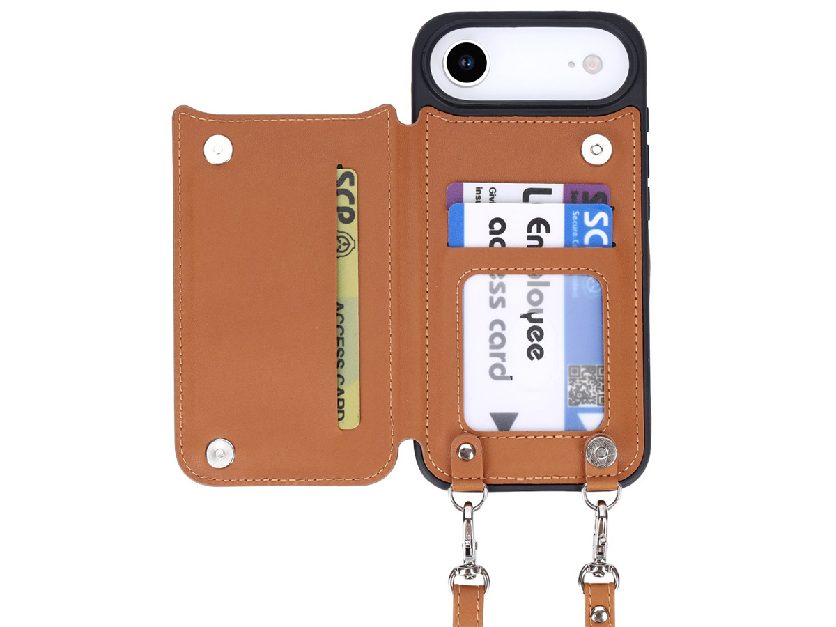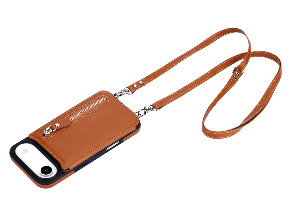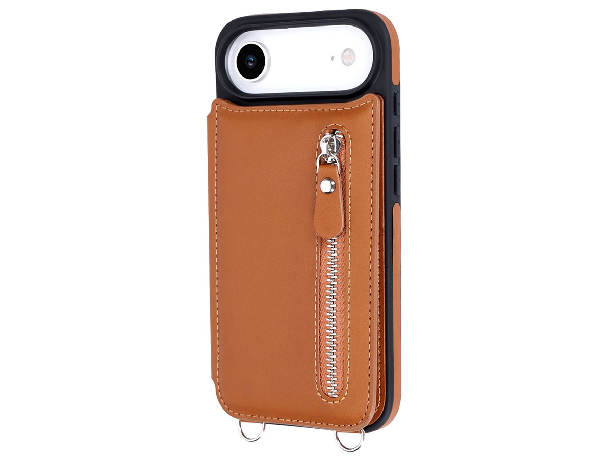 CaseMania Crossbody Wallet Case met Koord - iPhone 17 Air Hoesje Cognac