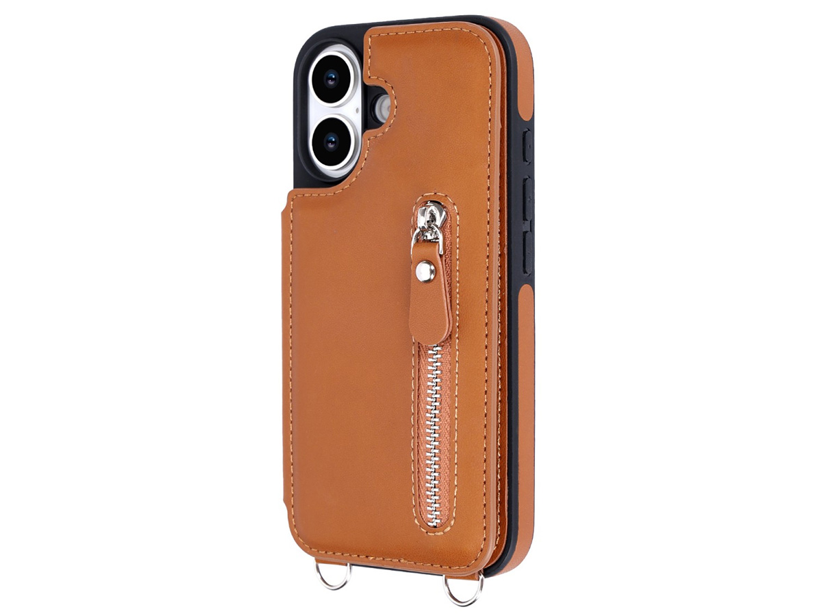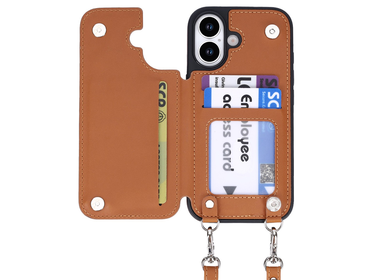CaseMania Crossbody Wallet Case met Koord - iPhone 17 Hoesje Cognac