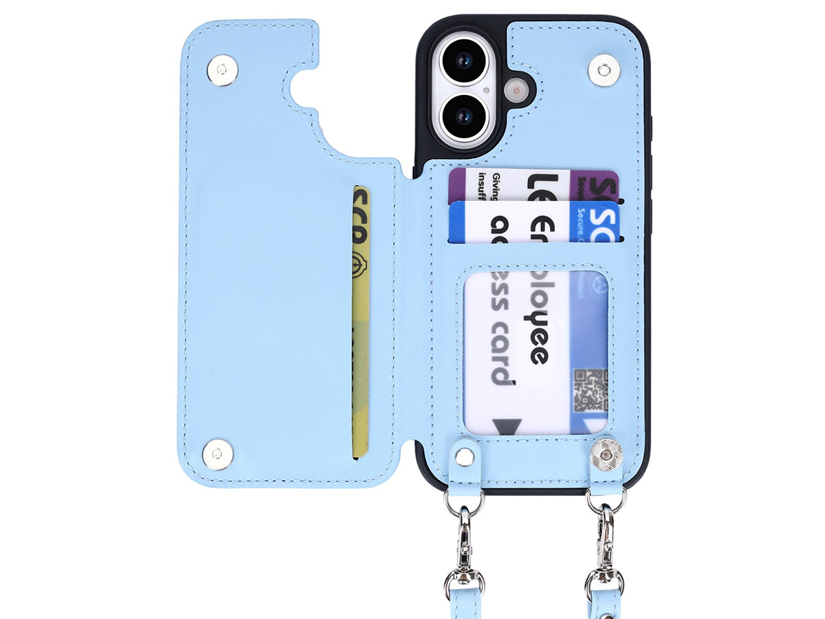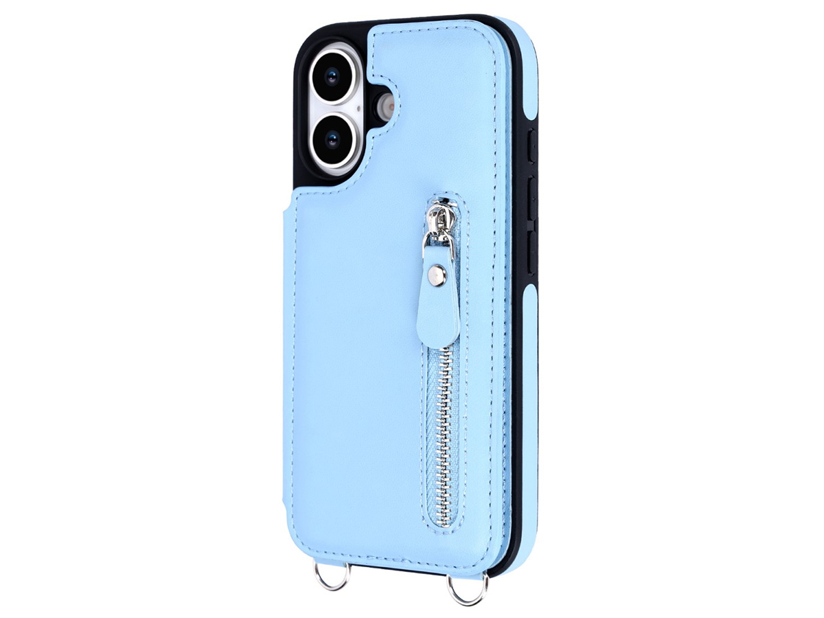 CaseMania Crossbody Wallet Case met Koord - iPhone 17 Hoesje Lichtblauw