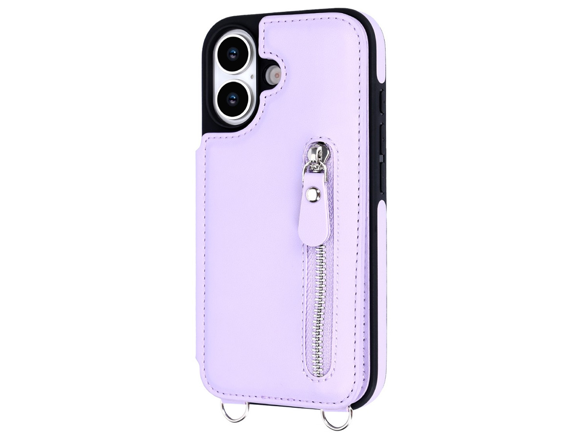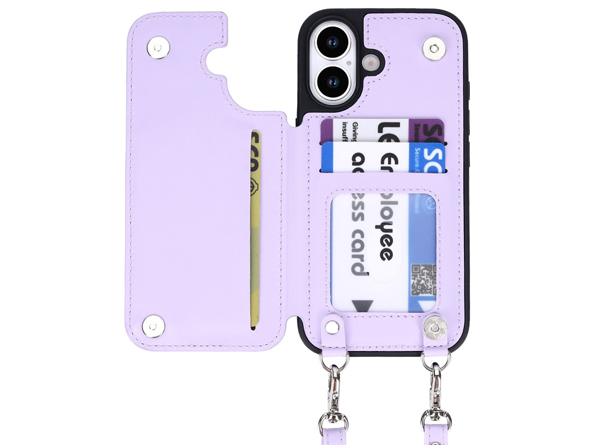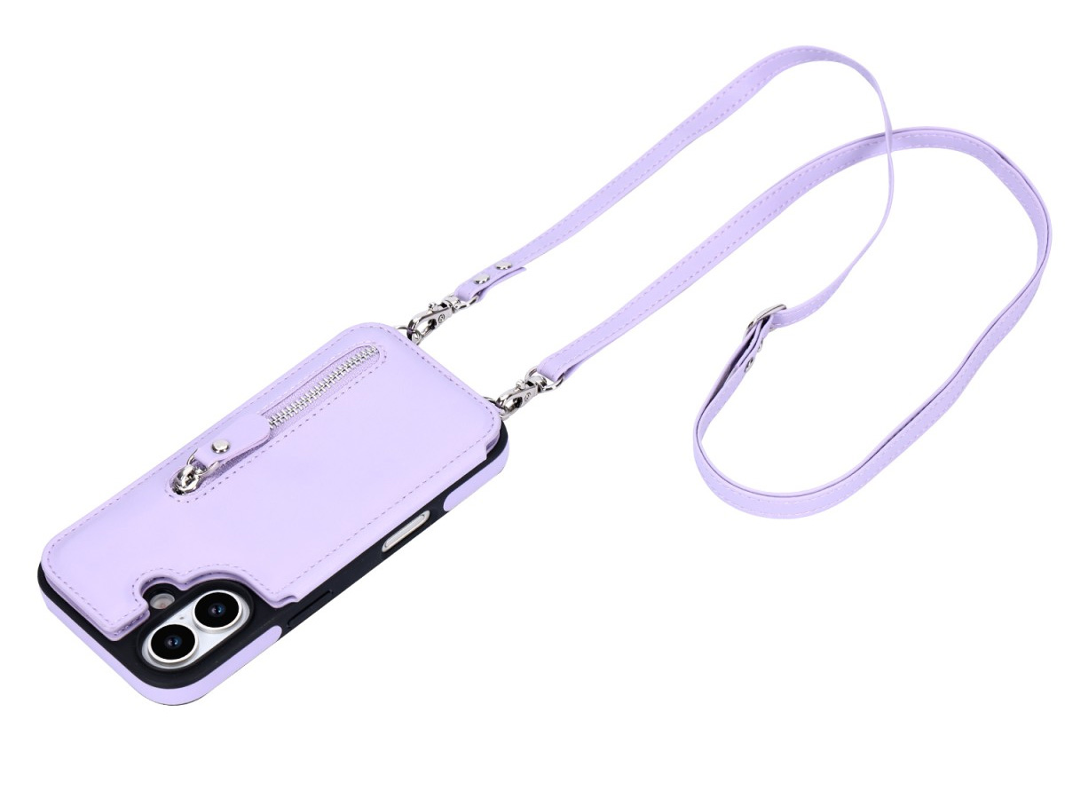 CaseMania Crossbody Wallet Case met Koord - iPhone 17 Hoesje Lila