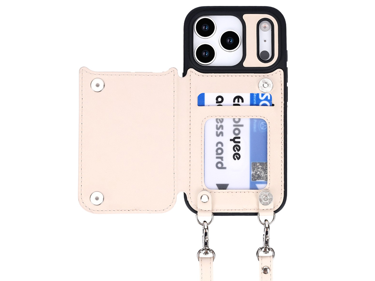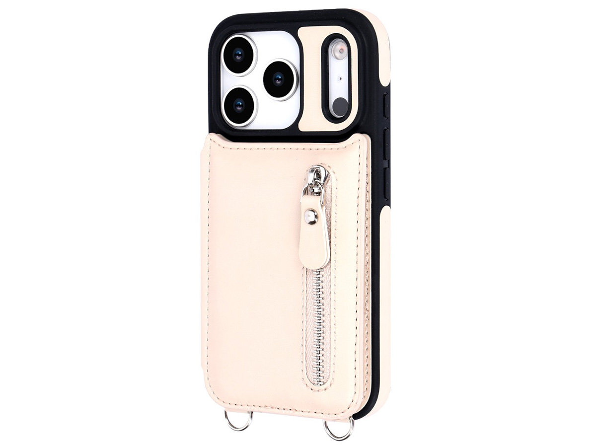 CaseMania Crossbody Wallet Case met Koord - iPhone 17 Pro Hoesje Beige