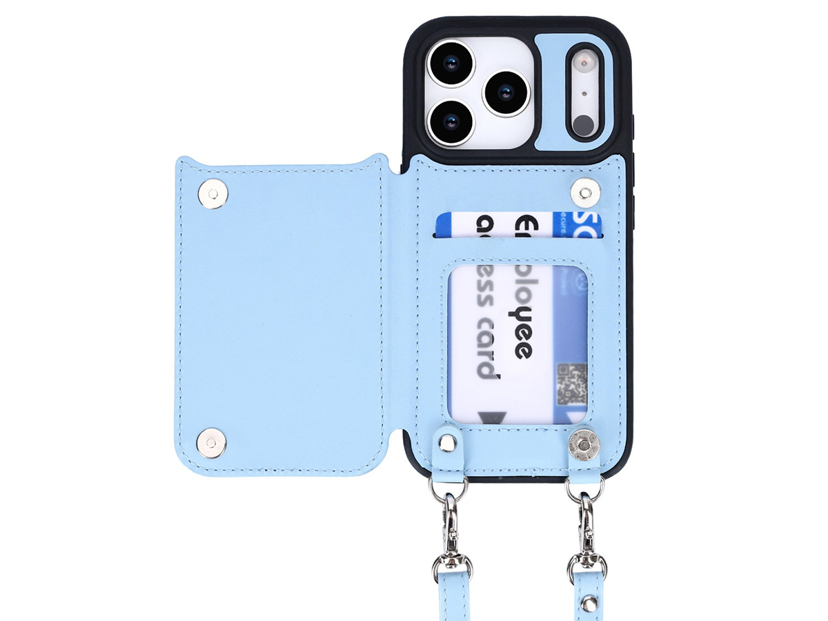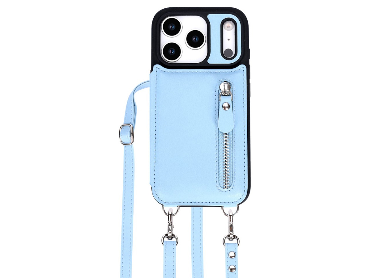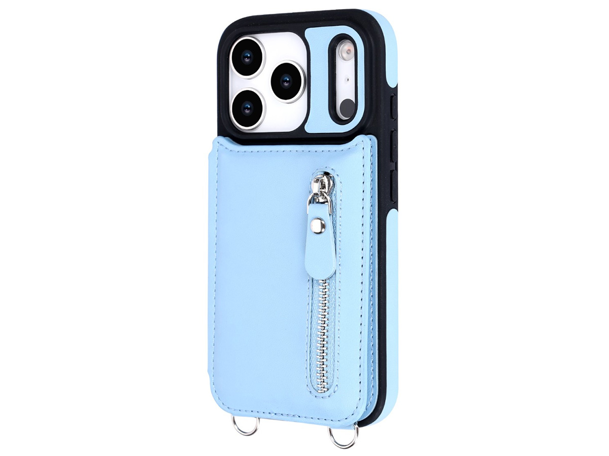 CaseMania Crossbody Wallet Case met Koord - iPhone 17 Pro Hoesje Lichtblauw